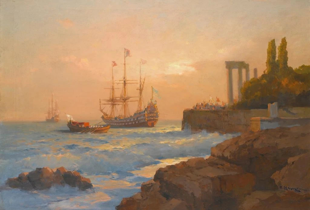 Triumphant ship approaching the port - Alexei Vasilievich Hanzen