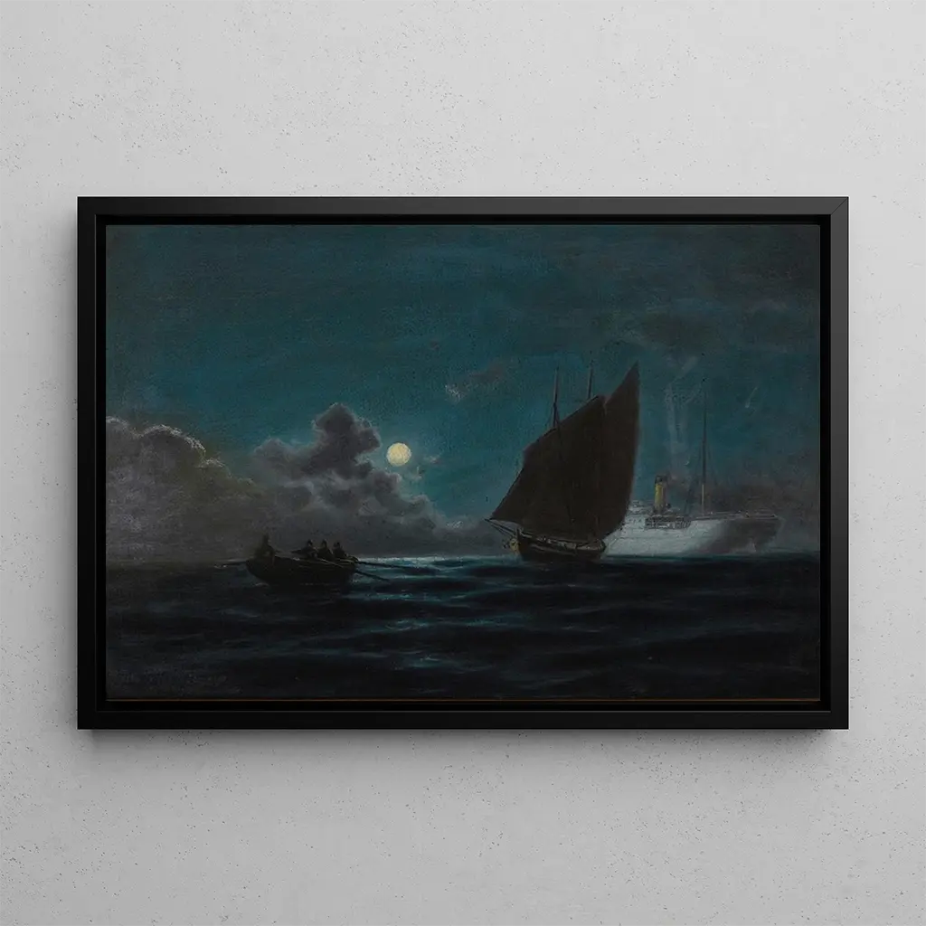 The reproduction of the art print Moonlit Ships is an ideal decorative piece to add a touch of serenity to your interior. Whether in a living room, office, or bedroom, this canvas evokes a peaceful and dreamy atmosphere. Its printing quality guarantees color fidelity and detail, allowing you to fully enjoy the beauty of the original work. With its undeniable aesthetic appeal, this art print will delight art lovers and enrich your interior decor.