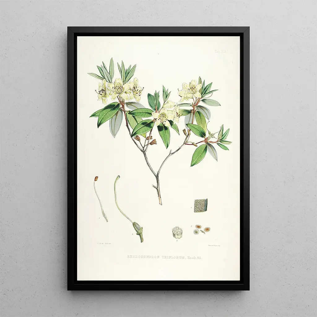 Cette art print des Rhododendrons de l'Himalaya de Sikkim est un ajout parfait à votre décoration intérieure, qu'il s'agisse d'un salon, d'un bureau ou d'une chambre. Sa qualité d'impression et son attention aux détails font de ce tableau un élément décoratif qui attire l'œil et suscite l'admiration. Avec sa palette de couleurs vibrantes, cette toile apporte une touche de fraîcheur et de nature à votre espace, tout en offrant une opportunité de conversation sur l'art et la botanique. Un choix idéal pour ceux qui apprécient la beauté florale et l'art botanique.