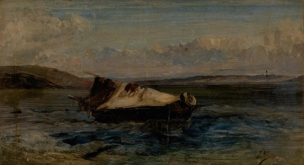"Petit bateau" by Eugène Isabey evokes the tranquility of a maritime scene, where a small sailboat glides peacefully on calm waters. The composition is distinguished by its soft and soothing tones, blending shades of blue and green that recall the sea. Isabey, with his mastery of reflections and lights, manages to create a serene and contemplative atmosphere. Every brushstroke seems to capture the gentle movement of the waves, inviting the viewer to feel the sea breeze and the softness of a suspended moment.