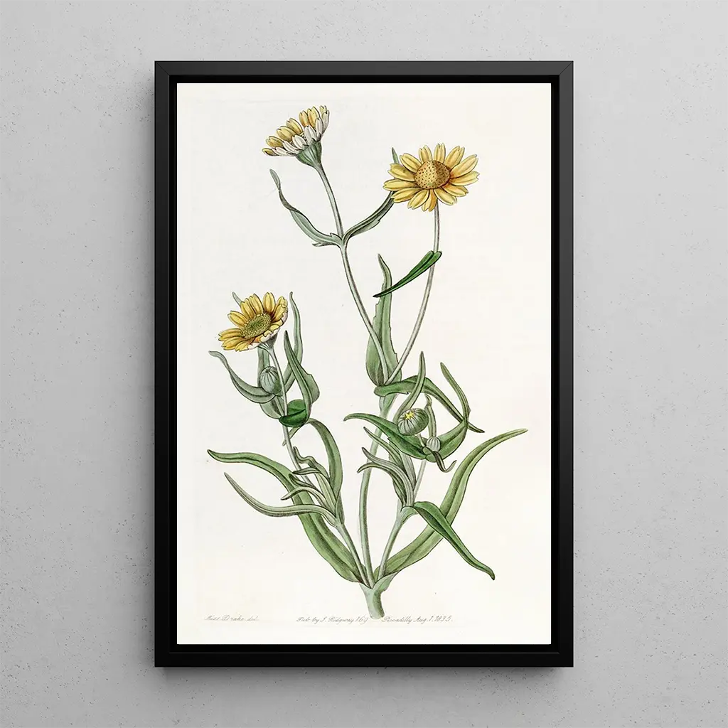 The reproduction of the smooth Lasthénie is a perfect decorative choice for those who appreciate natural beauty. Whether in a workspace, living room, or bedroom, this art print adds a touch of elegance and freshness. Its printing quality guarantees exceptional fidelity to the details of the original artwork, allowing you to enjoy the delicacy of this flower throughout the year. With its aesthetic appeal, this canvas becomes a central element of your decor, while paying tribute to the art of Sydenham Edwards.
