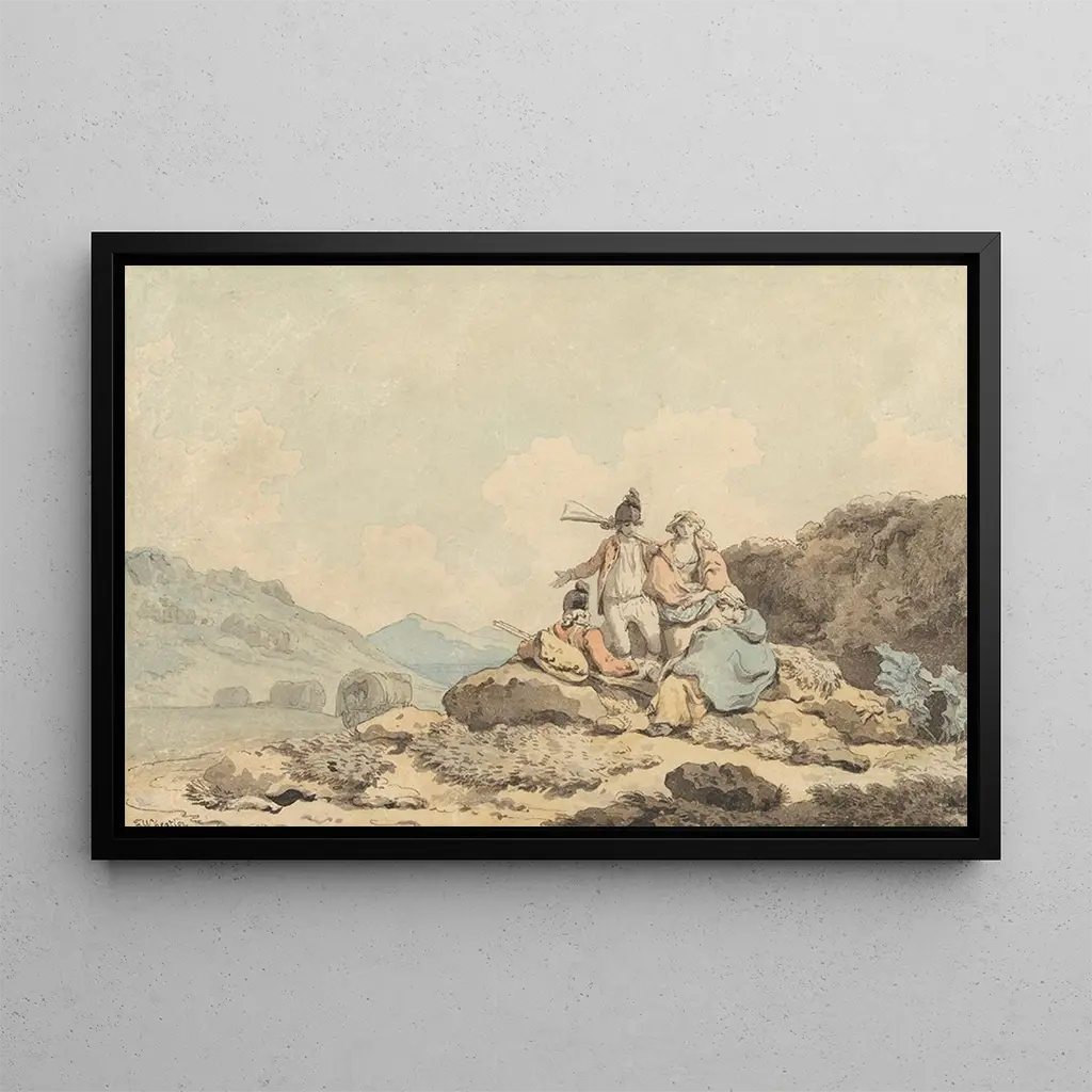 In this art print of Soldiers and Peasants, Francis Wheatley immerses us in a time when daily life intertwined with historical events. The dynamic composition of the work, with its moving figures, evokes an atmosphere of camaraderie and labor. The warm colors, dominated by earthy tones and bursts of light, breathe palpable life into this scene. Wheatley's technique, blending realism with a touch of romanticism, allows viewers to feel the emotion of the characters, whether soldiers or peasants, all united by a common destiny.