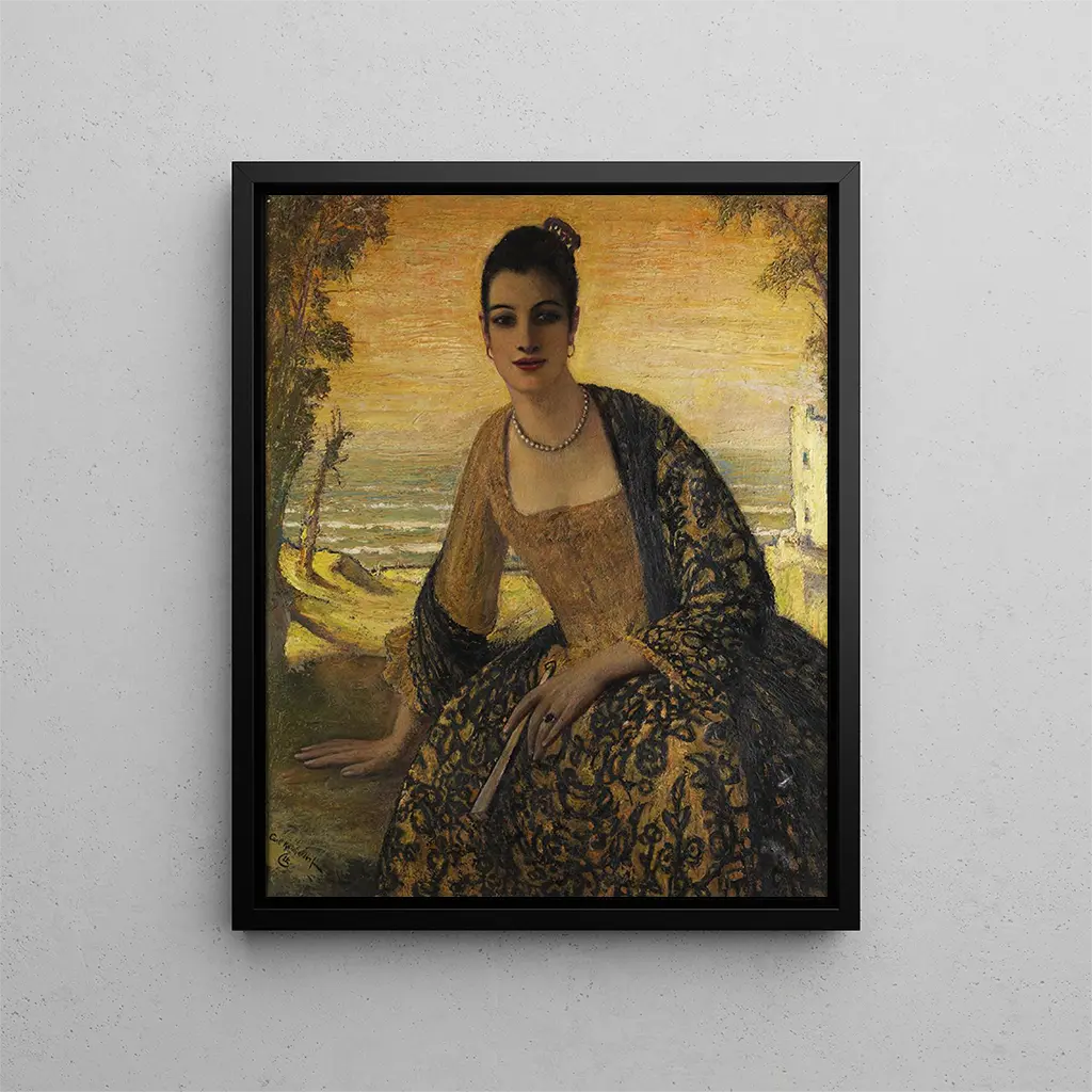 The "Spanish Woman" art print by Carl Kricheldorf stands out as an iconic piece, revealing the richness and depth of early 20th-century art. In this canvas, the artist manages to capture the essence of Spanish culture through the lens of his unique perspective. The work evokes not only the beauty of a woman but also an atmosphere charged with emotions and stories. This representation, both intimate and universal, invites the viewer to immerse themselves in a universe where sensuality and the strength of traditions meet.
