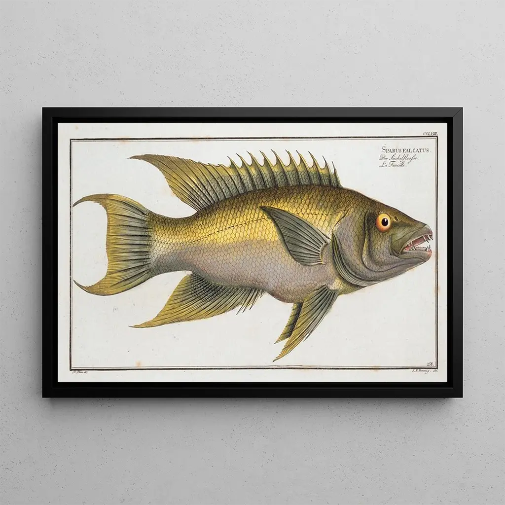 Marcus Elieser Bloch, a naturalist and artist of the 18th century, played a key role in illustrating marine species. His work is set in a time when science and art converged, allowing for a better understanding of aquatic biodiversity. Influenced by the discoveries of his era, Bloch was able to combine scientific precision with artistic sensitivity. His illustrations, including the art print of Sparus falcatus, are considered references in the field of ichthyology, demonstrating the importance of art in documenting species. His legacy endures, inspiring marine biology and art enthusiasts to this day.