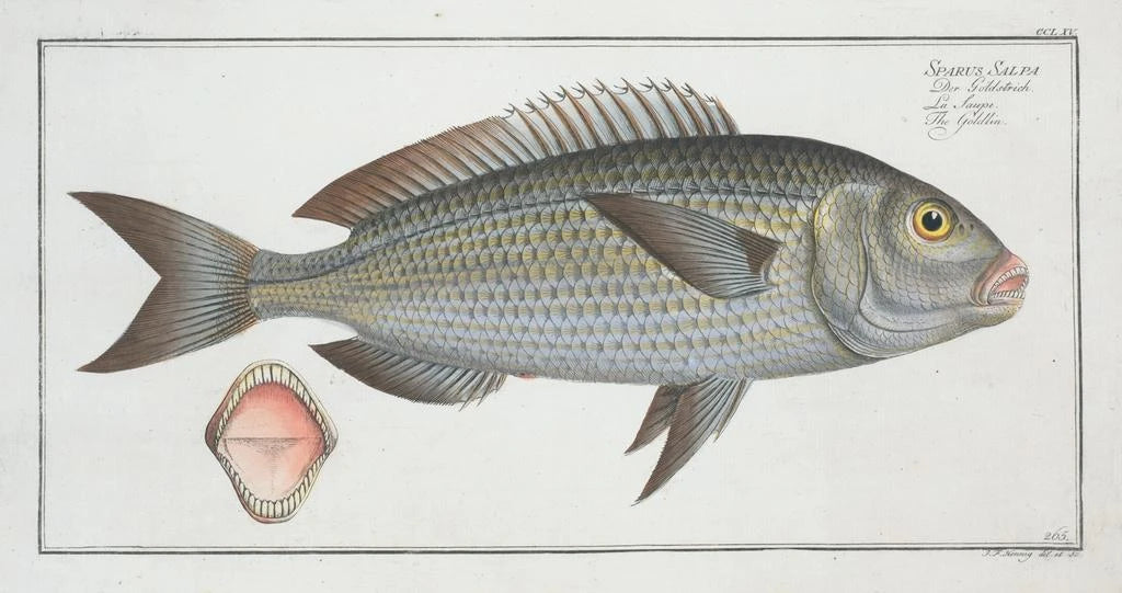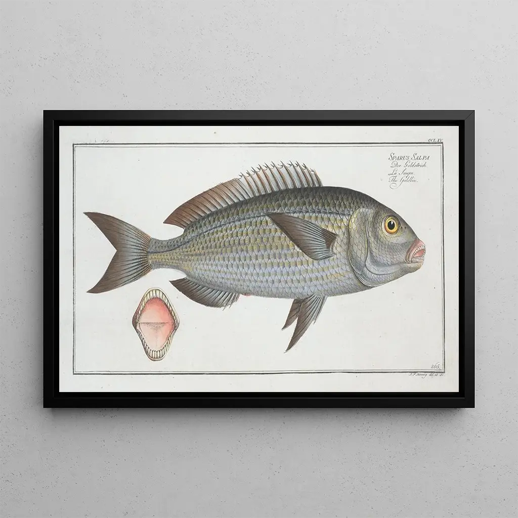 Marcus Elieser Bloch, a German naturalist and artist of the 18th century, is often regarded as one of the pioneers of ichthyology, the study of fish. His passion for nature led him to create works that combine science and art, such as the art print of "Sparus Salpa Le Goldlin." Bloch traveled across Europe and beyond to study and depict various fish species, thus contributing to the scientific knowledge of his time. His meticulous approach and attention to detail make his works essential references for marine biology and art enthusiasts. The significance of his work lies in his ability to blend aesthetics and knowledge.