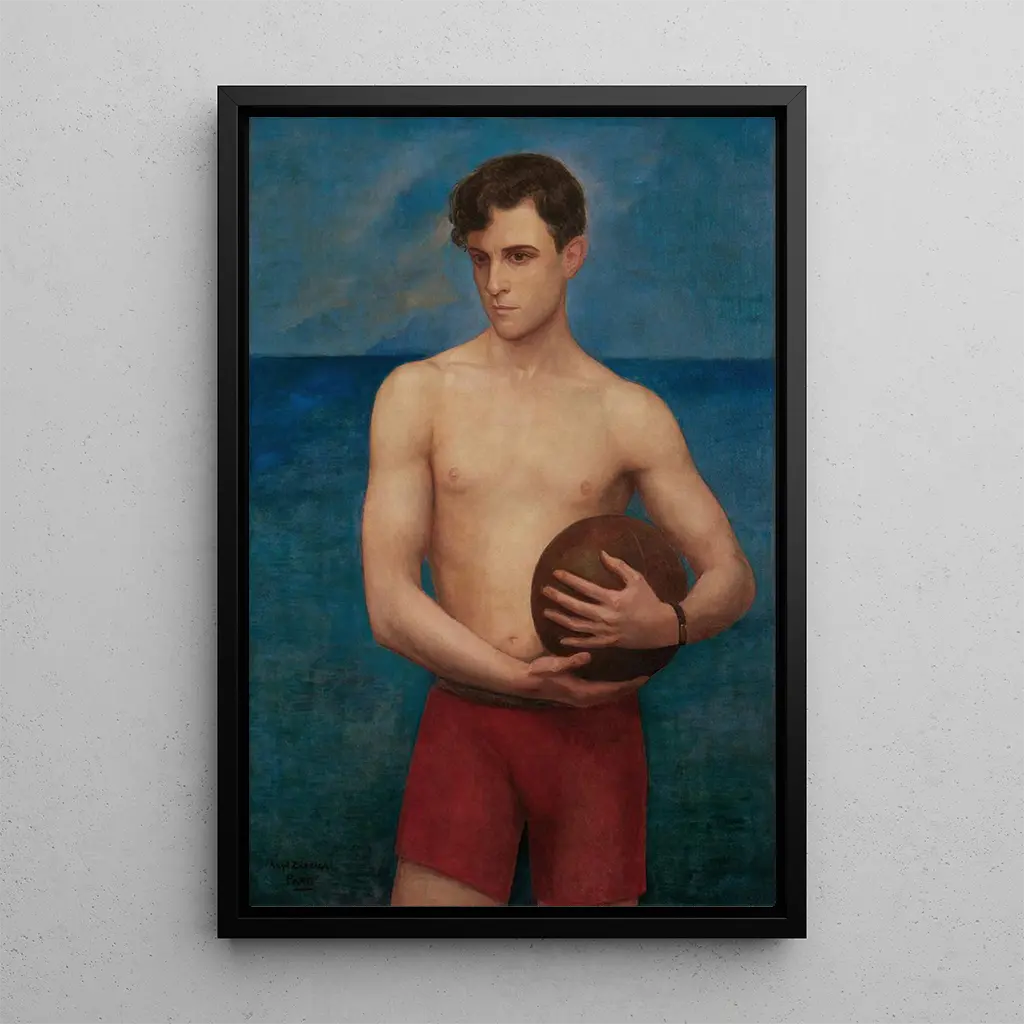 In this art print of the painting Sportif Ramón Novarro, the artist Ángel Zárraga captures the very essence of movement and vitality. The vibrant colors and dynamic shapes evoke an atmosphere of power and determination. Zárraga's technique, blending bold brushstrokes with delicate details, brings to life the iconic figure of Ramón Novarro, a renowned actor and athlete. The piece exudes a palpable energy, inviting the viewer to feel the passion and commitment that animate the subject. Every brushstroke seems to dance across the canvas, creating a harmonious composition that celebrates the beauty of the human body in action.