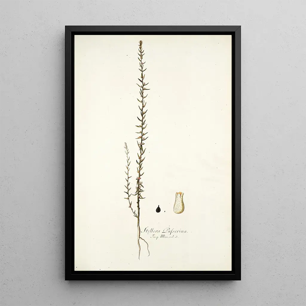 The art print of Stellera passerina is a decorative piece that harmoniously fits into various spaces, whether a living room, an office, or a bedroom. Its soft and soothing palette brings a touch of freshness and serenity to your interior. The quality of the print guarantees fidelity to the colors and details of the original work, allowing you to enjoy its aesthetic appeal daily. By choosing this canvas, you opt for a refined decoration that evokes the beauty of nature while enriching your living environment.