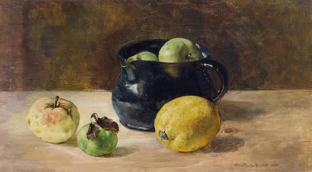 The art print of Anna Munthe-Norstedt's Still Life evokes timeless serenity through a carefully orchestrated composition. Everyday objects, such as fruits and flowers, are arranged with a delicacy that highlights their shapes and colors. The soft hues and play of light create a warm atmosphere, inviting contemplation. Munthe-Norstedt succeeds in transforming ordinary elements into a true celebration of the beauty of domestic life, where every detail matters and tells a story.