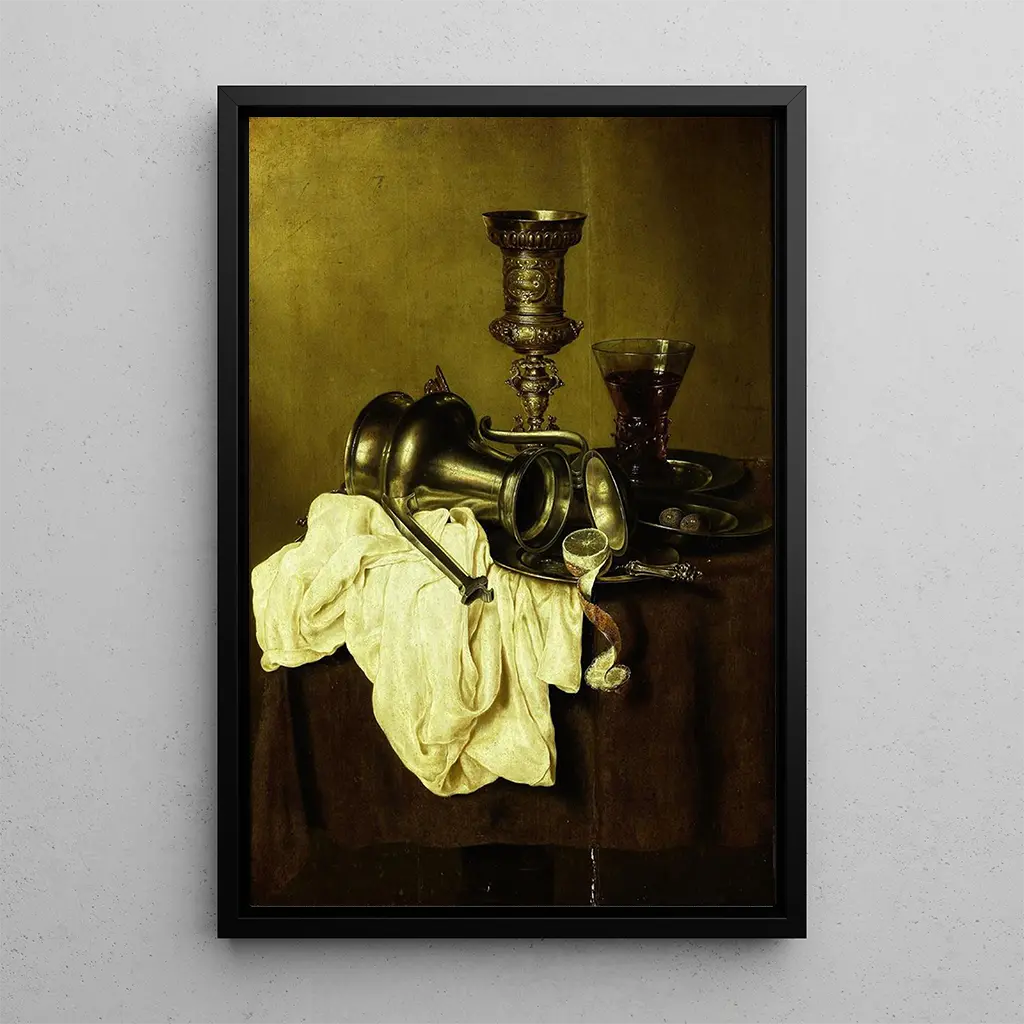 Gerret Willemsz Heda, actif au XVIIe siècle, est l'un des maîtres de la nature morte hollandaise. Son style, marqué par une attention minutieuse aux détails et une maîtrise des jeux de lumière, a influencé de nombreux artistes de son époque. Heda a su capturer l'essence de la vanité et de la beauté éphémère à travers ses compositions, souvent remplies d'objets symboliques. Son travail reflète la richesse et la prospérité des Pays-Bas au cours de l'âge d'or, et ses œuvres continuent d'être admirées pour leur capacité à allier technique et profondeur émotionnelle.