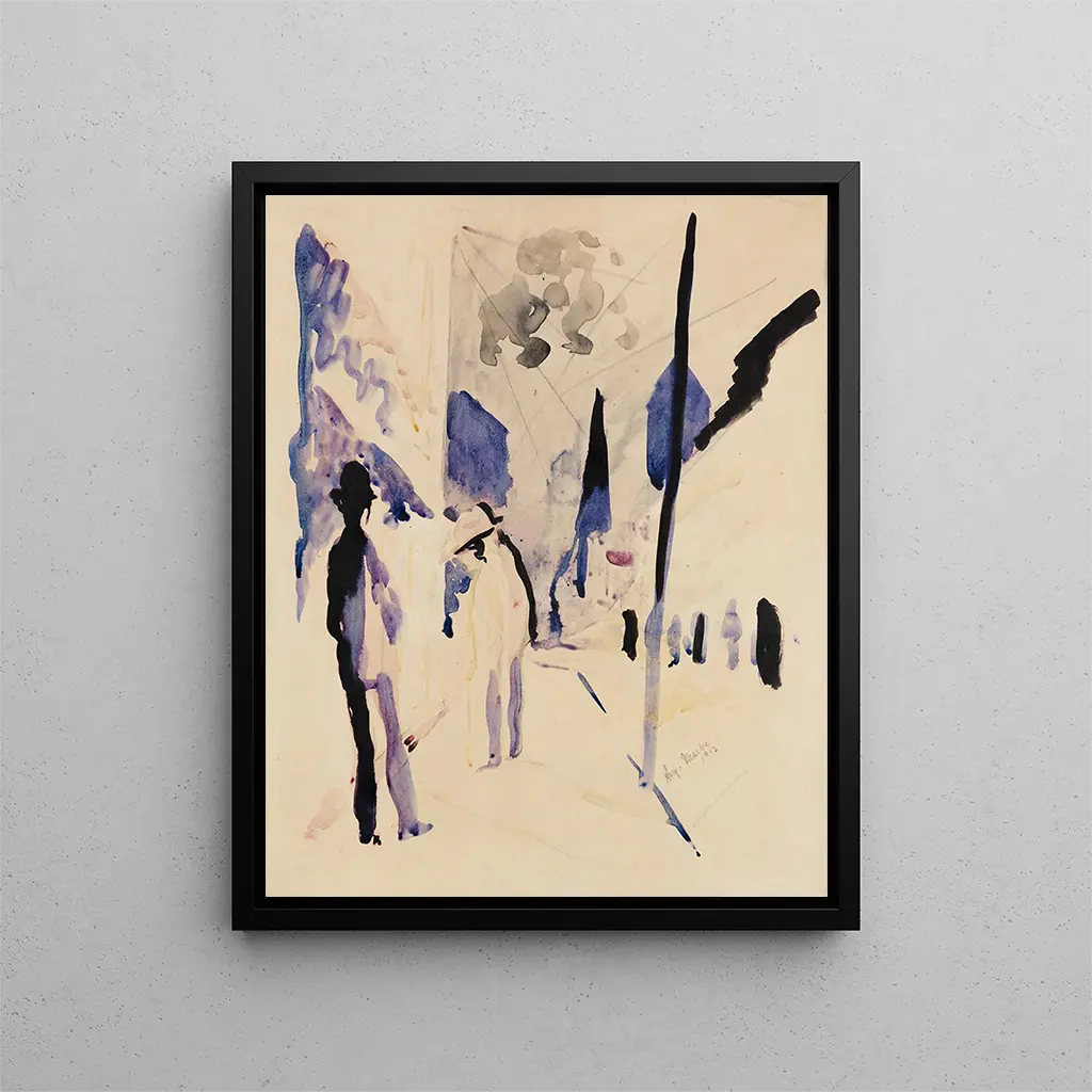 August Macke, an emblematic figure of the early 20th century, made his mark with an innovative approach and artistic sensitivity. A member of the expressionist group "Die Brücke," he explored themes of modernity, nature, and humanity through a palette of vivid colors and bold forms. His influence extends far beyond his own work, inspiring many contemporary and future artists. Macke captured the spirit of his time, translating emotions and sensations into accessible and touching art. "Rue am Abend" is a perfect example of this ability to evoke deep feelings through simple images, making this artist an essential figure in the history of modern art.