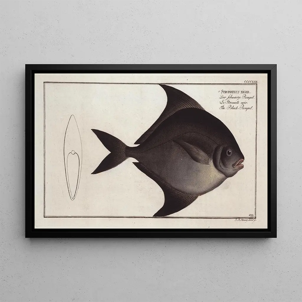 The art print of "Stromateus niger" is an ideal choice for those wishing to add a marine touch to their interior decor. Whether in an office, a bathroom, or a living room, this print evokes the tranquility of the oceans and the richness of aquatic life. Its reproduction quality ensures fidelity to details and colors, paying homage to Bloch's original work. With its aesthetic appeal, this canvas will captivate attention and enhance the ambiance of any space, while celebrating the beauty of underwater nature.