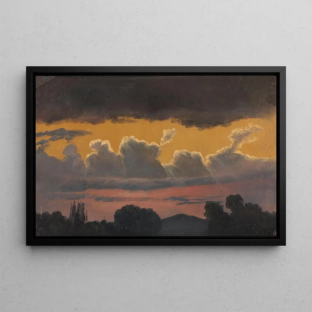 Study of Clouds over Landscape: An Harmony Between Sky and Earth The artwork "Study of Clouds over Landscape" by Knud Baade evokes a serene and contemplative atmosphere. The delicate shades of blue and gray blend to create a tumultuous sky, while the landscape below is depicted with soothing softness. Baade's technique, which skillfully combines oil and brushwork, brings clouds to life that seem to float above a tranquil land. Each brushstroke reveals mastery of light, transforming the painting into a true invitation to daydream, where the viewer can escape and lose themselves in the vastness of the sky. Knud Baade: a master of Romantic landscape painting Knud Baade, a Norwegian painter of the 19th century, is renowned for his landscapes imbued with Romanticism. Influenced by the wild nature of his homeland, he captured the essence of Norwegian skies with a unique sensitivity. Active during a period when Romanticism was at its peak, Baade was inspired by artists such as Caspar David Friedrich. His work, though less known than that of his contemporaries, has left an indelible mark on Scandinavian art history, marking an era when nature was celebrated as a reflection of the human soul. A decorative acquisition with multiple assets The art print of "Study of Clouds over Landscape" is a decorative piece that will enhance any interior, whether in a living room, office, or bedroom. Its print quality and fidelity to the original colors make it an ideal choice for those wishing to bring an artistic touch to their space. With its undeniable aesthetic appeal, this artwork invites contemplation and serenity, transforming your environment into a haven of peace. Treat yourself to this canvas to enrich your decor and create a calming atmosphere at home.