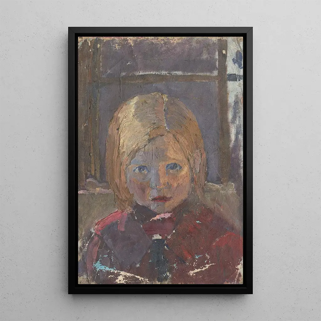 In this art print of "Study of a Girl's Head," Frida Konstantin offers a delicate insight into youthful innocence. The composition focuses on the expressive face of a young girl, capturing a range of emotions through delicate features. The pastel colors, soft and soothing, create a dreamy atmosphere, while the oil painting technique adds depth and texture to the piece. The subtle lighting accentuates the contours of the face, inviting the viewer to delve into the inner world of this enigmatic figure.