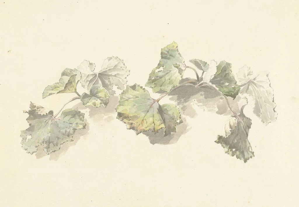The artwork "Study of Leaves" by Josephus Augustus Knip evokes the ephemeral beauty of nature through a meticulous composition. The details of the leaves, rendered with remarkable precision, capture light and shadow, creating a serene and contemplative atmosphere. The shades of green, yellow, and brown blend harmoniously, offering a palette reminiscent of changing seasons. The watercolor technique, used with finesse, conveys the lightness and transparency of the leaves, inviting the viewer into a rich and vibrant botanical world.