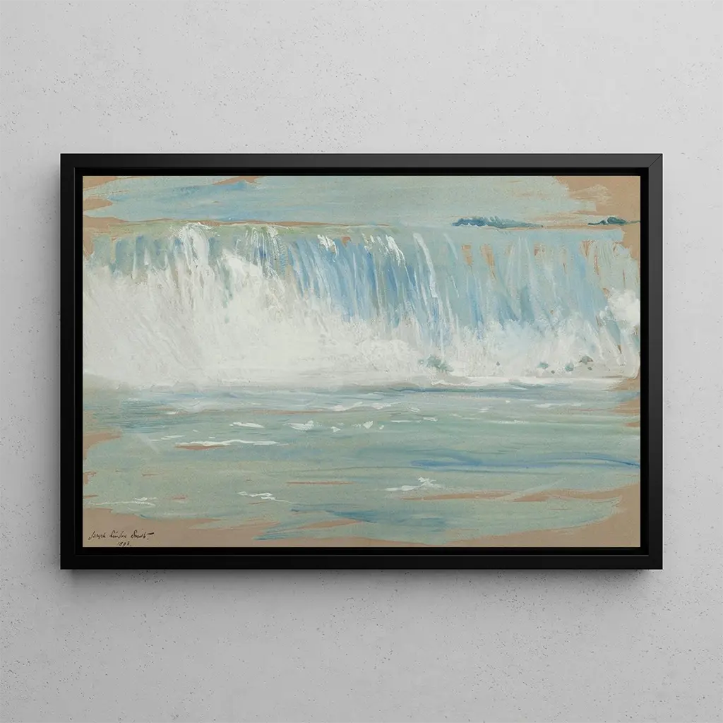 L'œuvre "Étude des chutes du Niagara" de Joseph Lindon Smith capte l'essence même de la majesté naturelle. À travers des coups de pinceau dynamiques, l'artiste évoque la force déferlante des eaux, tandis que des nuances de bleu et de vert se mêlent pour créer une atmosphère à la fois apaisante et tumultueuse. La composition, riche en détails, invite le spectateur à plonger dans ce paysage grandiose, où la lumière joue avec les ombres, accentuant la profondeur et le mouvement. Cette toile, véritable hommage à la beauté sauvage, transporte l'observateur au cœur de ce phénomène naturel impressionnant.