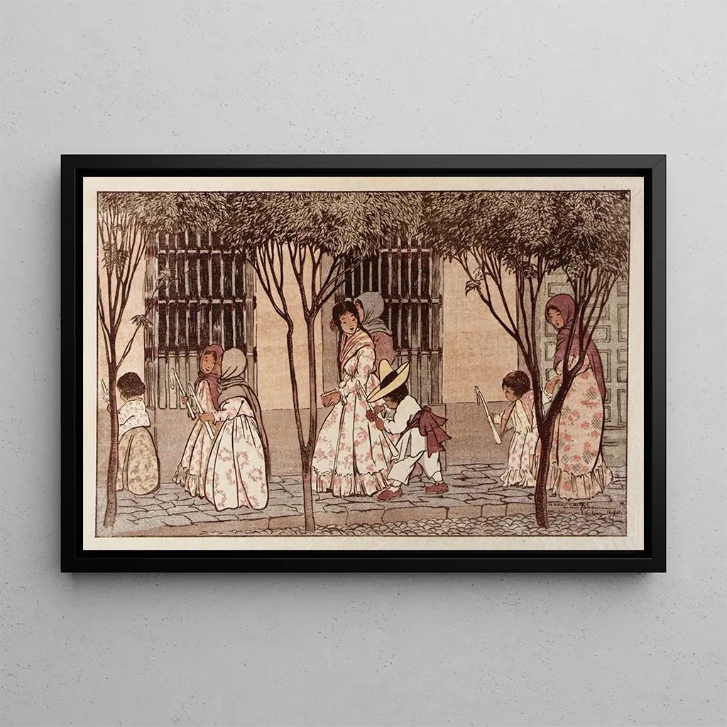 The art print of Sunday Morning by Helen Hyde evokes a peaceful and intimate scene, where the soft morning light caresses the faces of the characters. The pastel colors, delicate and soothing, create an atmosphere of serenity. The artist's technique, which skillfully blends watercolor and engraving, brings this composition to life, where every detail seems to tell a story. The expressions of the figures, immersed in their thoughts, invite contemplation and daydreaming, transporting the viewer to a moment suspended in time.
