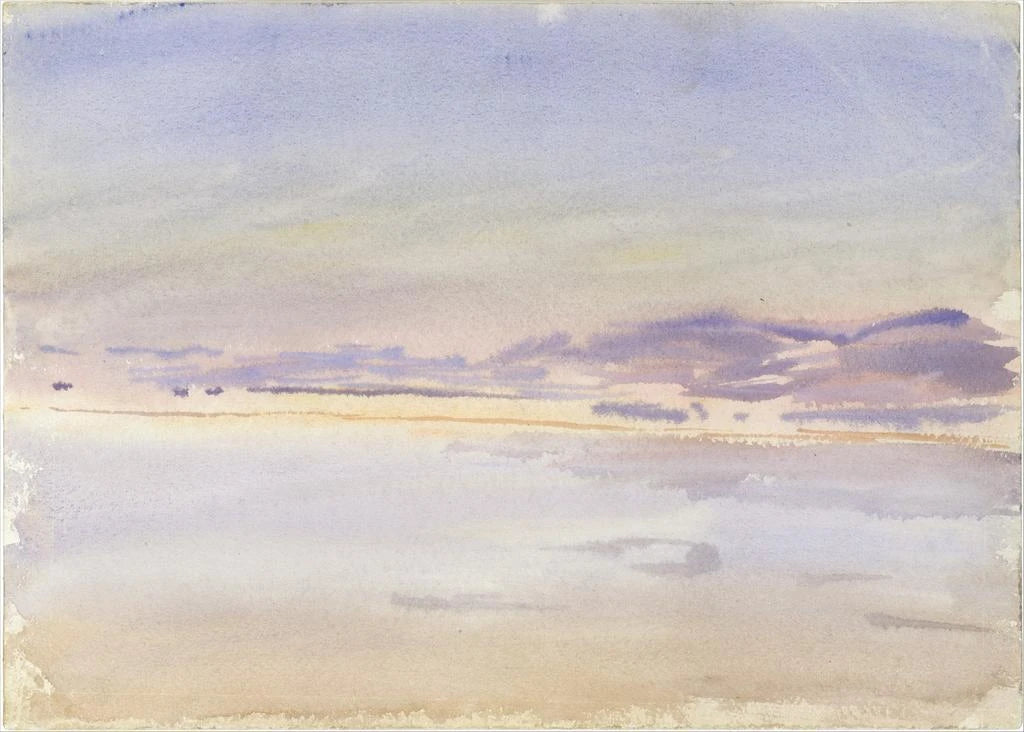 John Singer Sargent, born in 1856, is one of the most influential artists of the late 19th and early 20th centuries. Trained in Paris, he was influenced by the Impressionists but developed a unique style that combines realism and atmosphere. Sargent is best known for his refined portraits, but his landscapes, such as "Sunset over the sea," also demonstrate his skill in capturing light and color. His work marked his era, and he remains an iconic figure of American art, celebrated for his ability to evoke emotions through painting.
