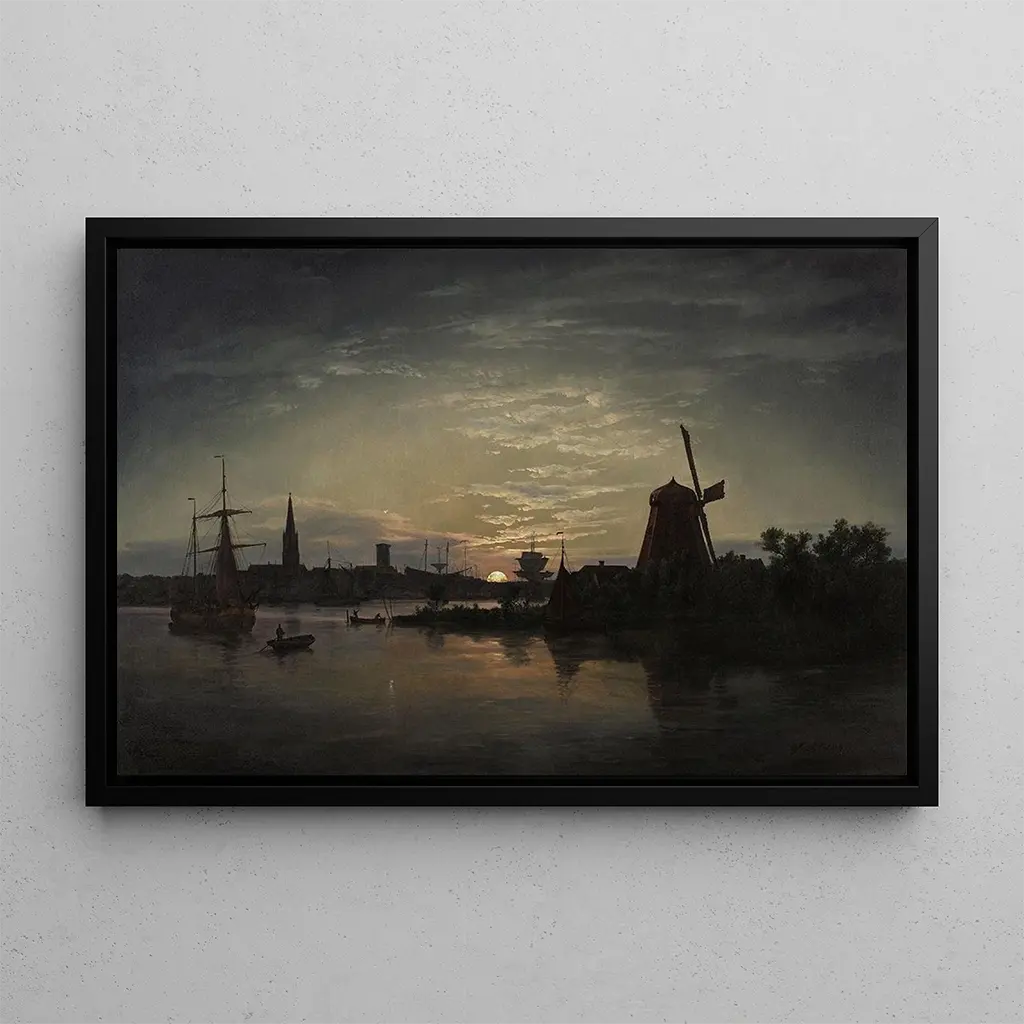 Johan Christian Dahl is considered one of the forerunners of Romantic landscape painting in Norway. Active in the early 19th century, he was heavily influenced by the landscapes of his homeland, as well as by the masters of European Romanticism. Dahl knew how to marry the grandeur of nature with human elements, creating balanced and moving compositions. His ability to play with light and atmosphere made him a respected artist, whose works continue to be celebrated. The art print of Świnoujście by Moonlight perfectly illustrates his talent for evoking emotions through landscape.