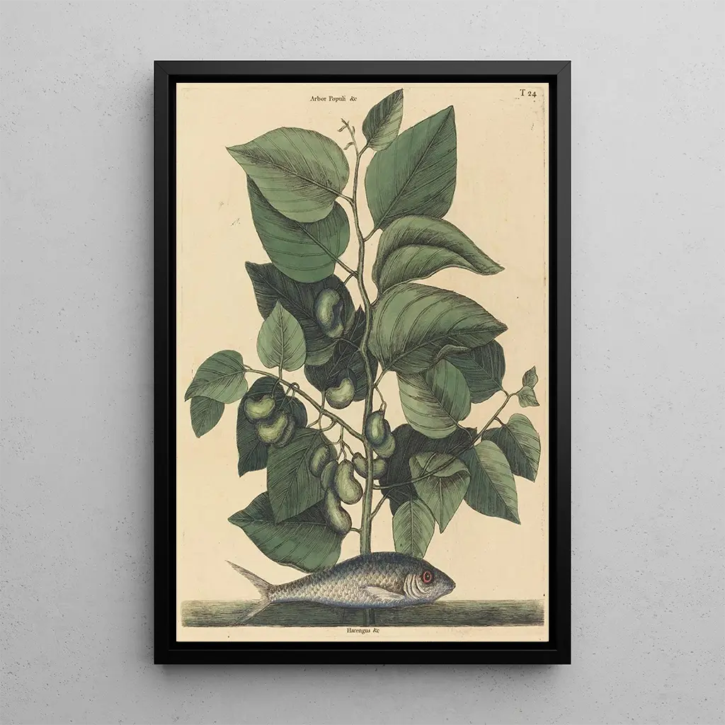 La reproduction de La Sardine Argentina carolina de Mark Catesby nous plonge dans l'univers fascinant de la vie marine. Cette œuvre, réalisée avec une précision remarquable, met en avant les détails délicats de la sardine, ses écailles scintillantes et ses nuances de bleu et argent. La technique aquarelle utilisée par Catesby apporte une légèreté et une transparence à l'image, évoquant la fluidité de l'eau. L'atmosphère générale de la toile est à la fois apaisante et vivante, invitant le spectateur à explorer les profondeurs marines et à apprécier la beauté de la nature.