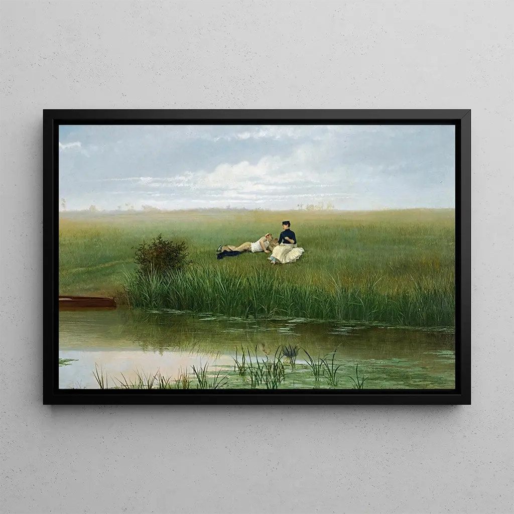 Le Repos des canotiers: an outdoor scene of relaxation by the water In "Le Repos des canotiers," Georges Croegaert captures a moment of serenity by a river. The boaters, dressed in elegant costumes, rest on a boat, surrounded by lush nature. The palette of bright colors, dominated by vibrant greens and soothing blues, evokes a summery and joyful atmosphere. Croegaert's technique, blending realism and impressionist touches, brings this peaceful scene to life, where every detail, from reflections on the water to the expressions of the characters, contributes to a total immersion in this convivial moment. Georges Croegaert: a master of realism in the 19th century Georges Croegaert, active in the 19th century, is recognized for his scenes of everyday life and refined portraits. Influenced by the Barbizon school and the Impressionist movement, he manages to combine precision and sensitivity in his works. His career, marked by an exhibition in Paris and growing recognition, testifies to the importance of his work in the artistic landscape of his time. "Le Repos des canotiers" perfectly illustrates his talent for capturing moments of life with a touch of poetry, making him an artist worth rediscovering. A decorative piece with multiple assets The art print of "Le Repos des canotiers" is an ideal decorative piece to enhance your living room, office, or bedroom. Its print quality and fidelity to the original colors make it an attractive choice for those wishing to add a touch of elegance to their interior. This painting, with its calming scene and charismatic characters, invites contemplation and relaxation. By adding this canvas to your decor, you create a warm and welcoming space, where every glance at the artwork evokes a gentle escape by the water.