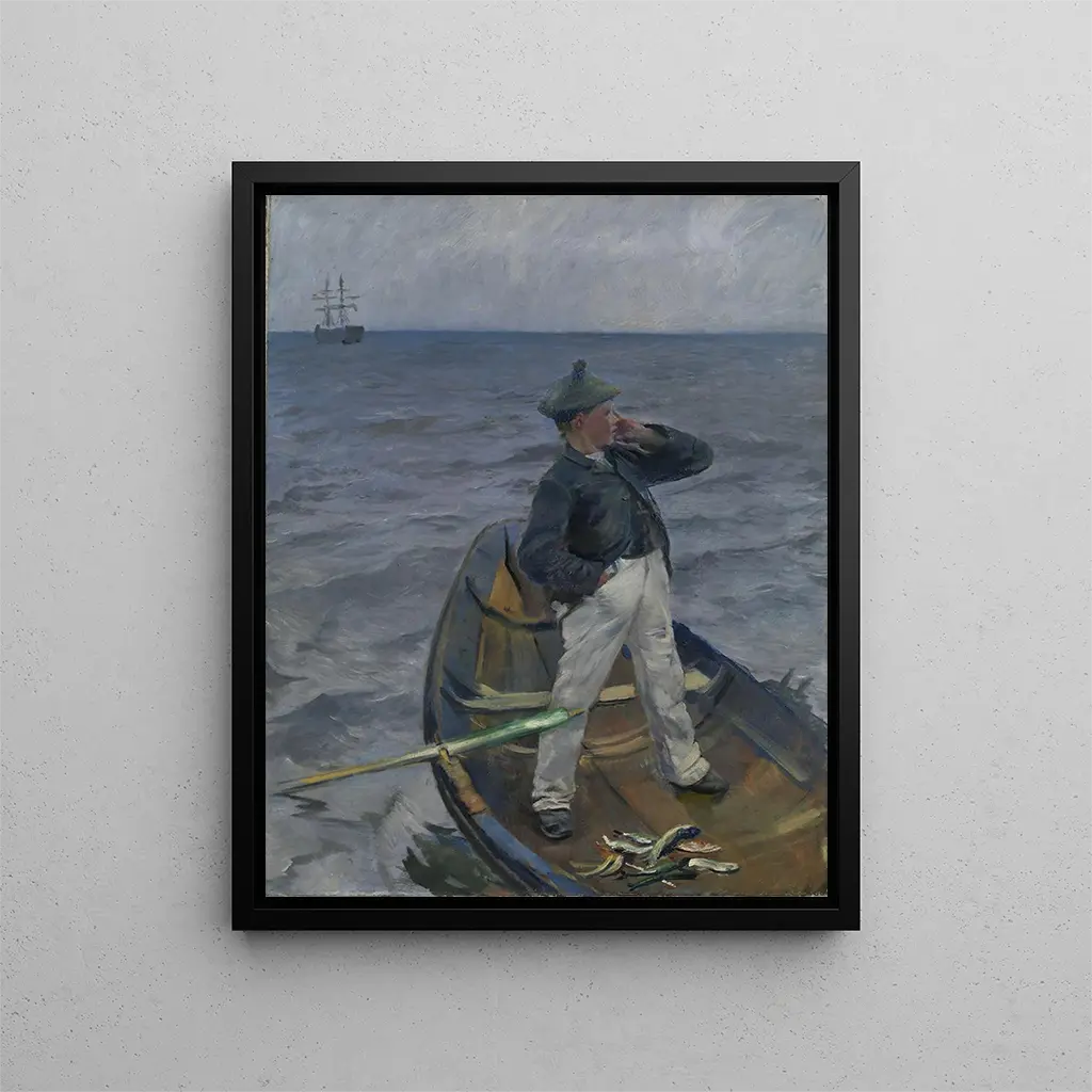 In the vibrant universe of art, some works manage to capture the very essence of a moment, an atmosphere, an emotion. "The Coastal Channel - Christian Krohg" fits into this tradition, offering viewers an invitation to immerse themselves in a maritime landscape filled with serenity and mystery. This painting, created by a master of Norwegian realism, transports us to the banks of a channel, where light plays with water and shades of blue and green blend harmoniously. Through this piece, Krohg succeeds in evoking not only the beauty of nature but also the fragility of human existence in the face of the vastness of the natural world.