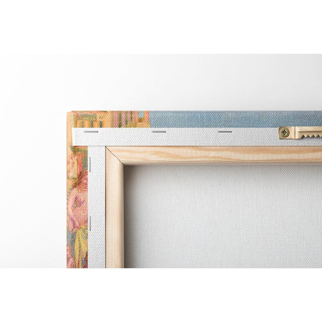 Canvas, matte finish print, mounted on a wooden structure, ready to hang. Framing options available on certain sizes.