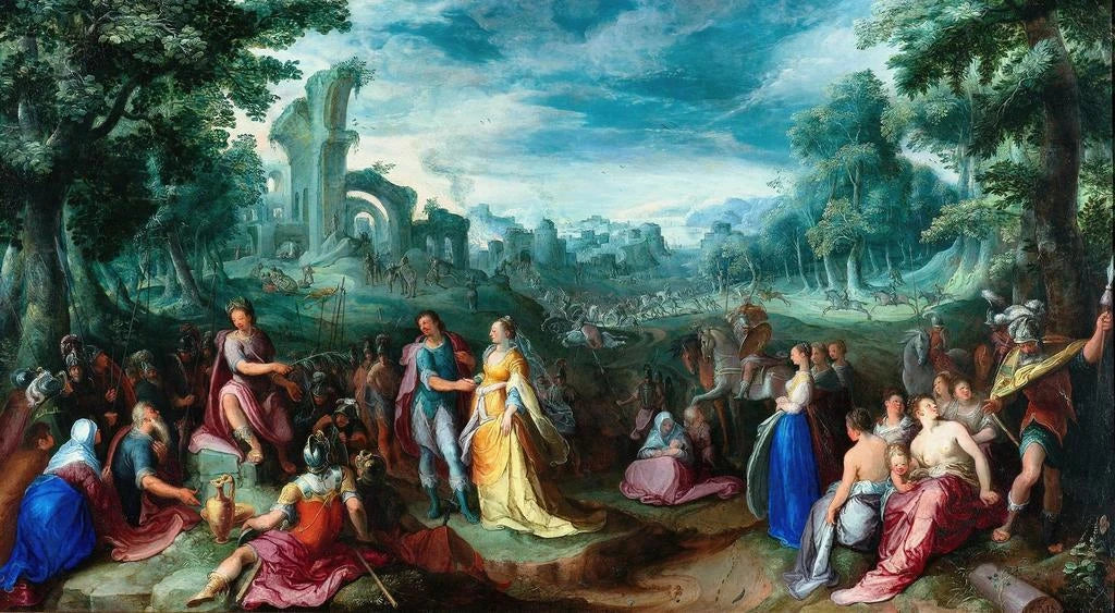 Karel van Mander, a painter and art theorist of the Dutch Renaissance, is often regarded as a pioneer of Flemish painting. His work is marked by a strong influence from the Italian school, which he studied during his travels. Van Mander also played a crucial role in spreading artistic ideas through his writings, notably his famous "Schilder-boeck". "La Continence of Scipio" demonstrates his talent for combining storytelling and technique, while reflecting the moral values of his time, where virtue was celebrated.