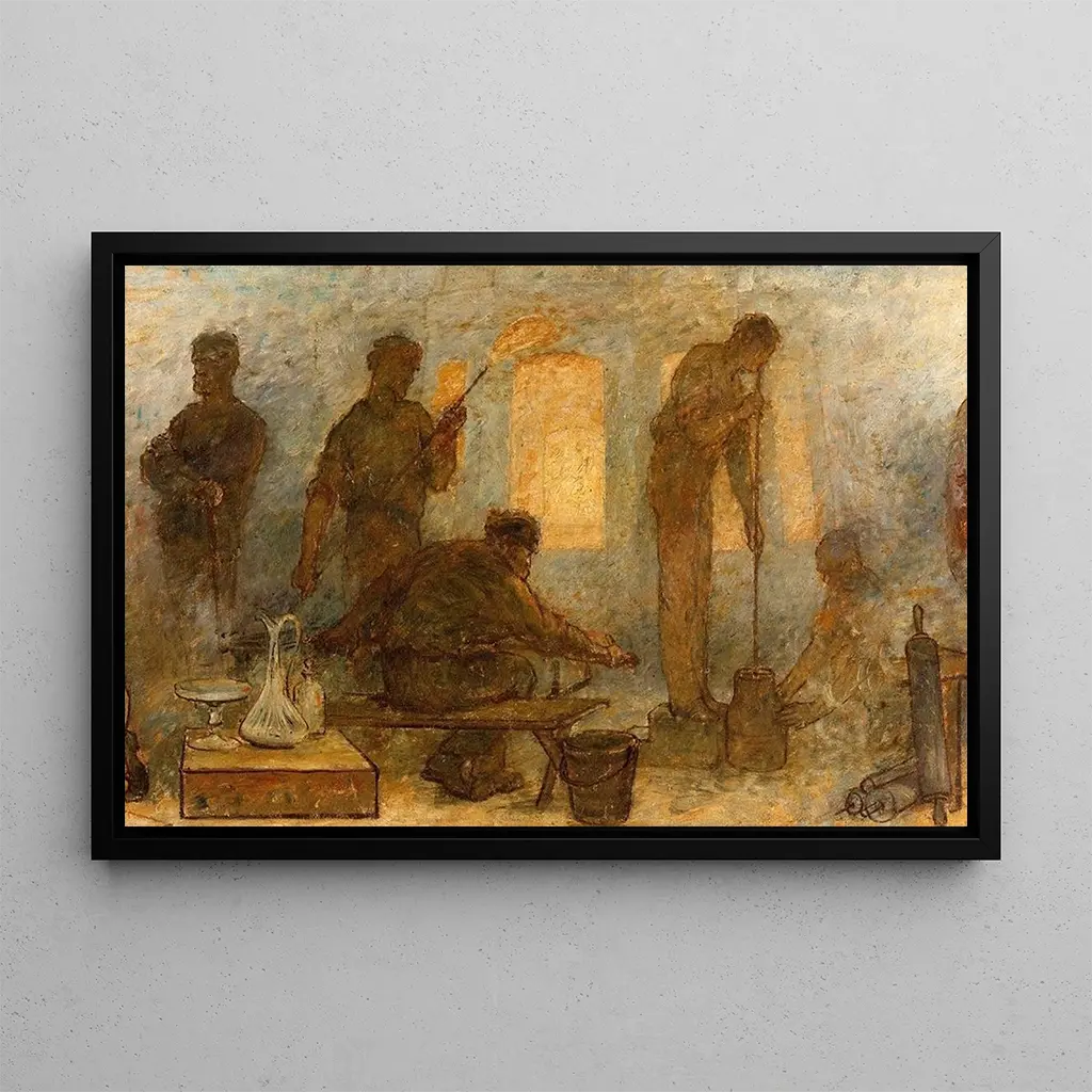 The Cristallerie by Edmond Eugène Valton is a captivating art print that plays with light and transparency. This painting, rich in details, features a harmonious composition where the reflections of crystals dance across the canvas. The colors, mainly shades of blue and white, evoke an atmosphere that is both serene and lively. Valton's technique, blending realism and impressionism, allows viewers to feel the texture of the objects and the brilliance of the surfaces. Each element of the composition seems to tell a story, inviting the viewer to immerse themselves in a world of delicate beauty and sophistication.