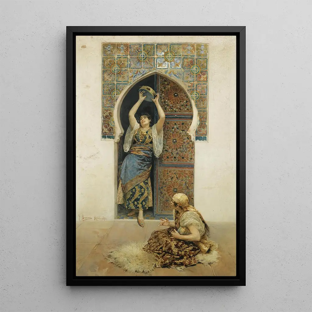 Dans "La Danse", Gustavo Simoni capture l'essence même de la joie et de l'énergie humaine à travers une composition vibrante et dynamique. Les couleurs éclatantes, allant des rouges profonds aux jaunes lumineux, créent une atmosphère festive qui invite le spectateur à se laisser emporter par le rythme de la danse. La technique de Simoni, mêlant impressionnisme et réalisme, donne vie aux personnages qui semblent presque sortir de la toile. Chaque mouvement est figé dans le temps, mais l'œuvre respire une telle vitalité qu'on peut presque entendre la musique qui accompagne cette danse enjouée.