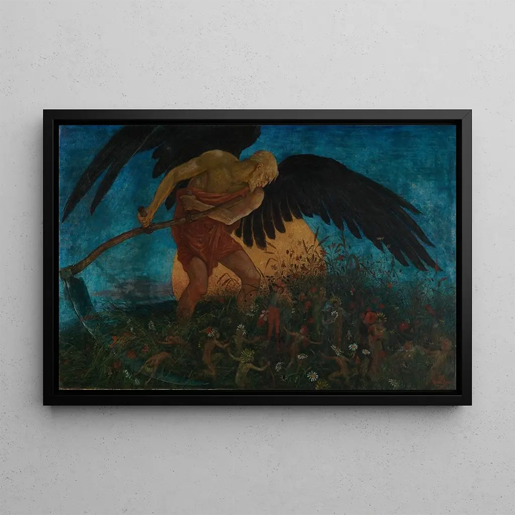 Choosing the art print of The Death of the Reaper means selecting a piece that will enrich your interior with a touch of reflection and elegance. Whether in a living room, office, or bedroom, this painting harmoniously fits various decorating styles, adding visual depth and a contemplative atmosphere. The quality of the reproduction guarantees fidelity to the original details and colors, while offering undeniable aesthetic appeal. This art print thus becomes a focal point of your space, inspiring admiration and discussions around its poignant message on life and death.
