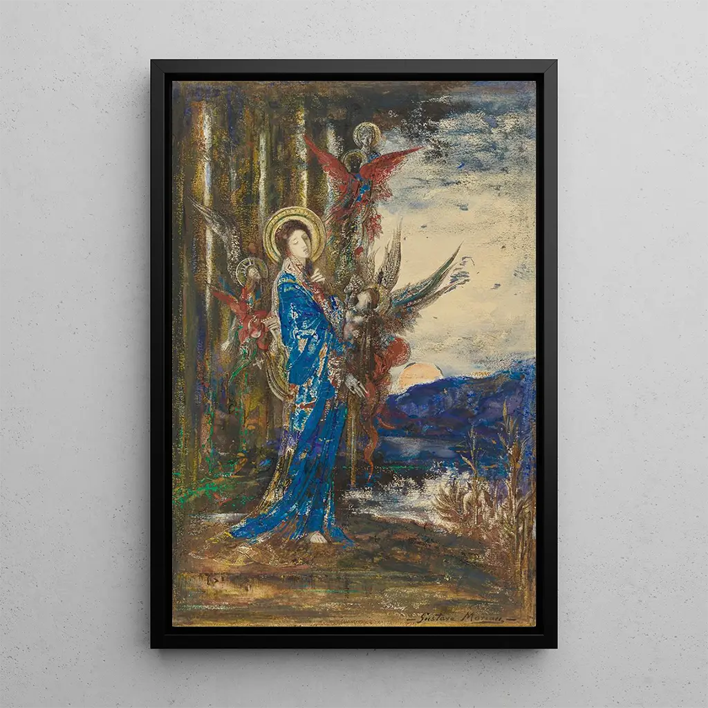 Les Preuves : un voyage au cœur de l'imaginaire Dans "Les Preuves", Gustave Moreau nous invite à explorer un monde onirique où la réalité et le rêve s'entrelacent. La toile, riche en symboles et en couleurs, évoque une atmosphère mystique et énigmatique. Les figures humaines, délicatement peintes, semblent flotter dans un espace intemporel, tandis que les motifs floraux et les éléments décoratifs ajoutent une dimension de profondeur et de complexité. La technique de Moreau, qui mêle habilement le clair-obscur et les couleurs chatoyantes, crée une ambiance fascinante, propice à la contemplation et à l'évasion. Gustave Moreau : un maître du symbolisme et de l'imaginaire Gustave Moreau, né à Paris en 1826, est l'un des précurseurs du symbolisme, un mouvement artistique qui a émergé à la fin du XIXe siècle. Influencé par les mythes et les légendes, Moreau a su créer un univers visuel riche et complexe, où chaque détail a son importance. Sa carrière, marquée par une quête incessante de la beauté et de l'émotion, a fait de lui une figure incontournable de l'histoire de l'art. Ses œuvres, souvent empreintes de mystère et de sensualité, continuent d'inspirer de nombreux artistes contemporains, témoignant de l'importance de son héritage. Une acquisition décorative aux multiples atouts La reproduction de "Les Preuves" est un choix idéal pour ceux qui souhaitent ajouter une touche d'originalité à leur décoration intérieure. Que ce soit dans un salon, un bureau ou une chambre, cette toile apportera une atmosphère unique et captivante. Sa qualité d'impression garantit une fidélité remarquable aux détails de l'œuvre originale, permettant ainsi de profiter pleinement de la richesse visuelle de l'art de Moreau. En intégrant ce tableau dans votre espace, vous offrez à votre intérieur une pièce d'art qui suscitera l'admiration et l'émerveillement de vos invités.