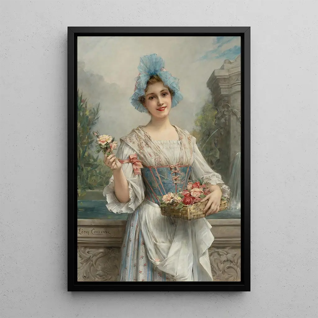 In this captivating artwork, La marchande de fleurs, Léon François Comerre immerses us in a vibrant universe where nature and humanity meet. The composition is dominated by bright colors, from roses to violets, dancing under soft light, creating a warm and welcoming atmosphere. The artist's technique, blending realism and impressionism, allows you to feel the delicate texture of the petals and the freshness of the flowers. The expression on the merchant's face, filled with serenity, invites contemplation and wonder at the ephemeral beauty of nature.