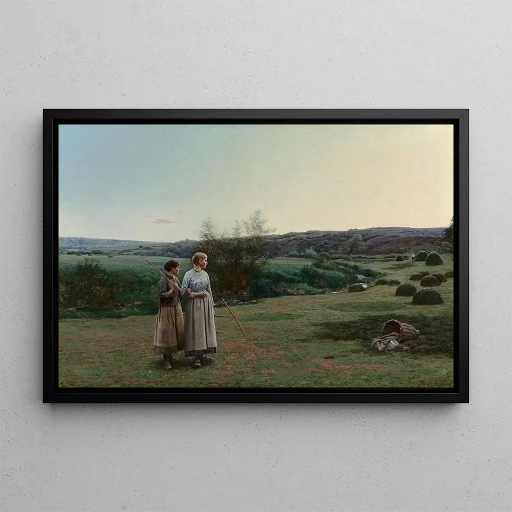 Rakes: a symphony of colors and light In the artwork "Rakes," Jean Ferdinand Monchablon immerses us in a bucolic scene where nature and man coexist harmoniously. The composition is dominated by warm tones, evoking the golden light of the setting sun that bathes the landscape. The rakes, symbols of agricultural work, are carefully arranged, creating a visual dynamic that draws the eye. Monchablon's technique, blending impressionism and realism, gives this canvas a peaceful and contemplative atmosphere, inviting the viewer to feel the serenity of a moment frozen in time. Jean Ferdinand Monchablon: a master of light and nature Jean Ferdinand Monchablon, active at the end of the 19th century, is a French artist renowned for his vibrant landscapes and his ability to capture light. Influenced by impressionism, he fits into an artistic tradition that values nature and everyday life. Monchablon has established himself in the art world by exploring rural scenes, often imbued with nostalgia. His works, such as "Rakes," reflect a time when agriculture and rural life were at the heart of concerns, offering a tender look at a world in transition. A decorative acquisition with multiple assets The art print of "Rakes" is a decorative piece that fits perfectly into various spaces, whether a cozy living room, an inspiring office, or a calming bedroom. Its reproduction quality guarantees fidelity to the colors and details of the original artwork, allowing full appreciation of Monchablon's talent. With its undeniable aesthetic appeal, this canvas brings a touch of serenity and nature to your interior, while sparking conversations about art and the beauty of rural life.