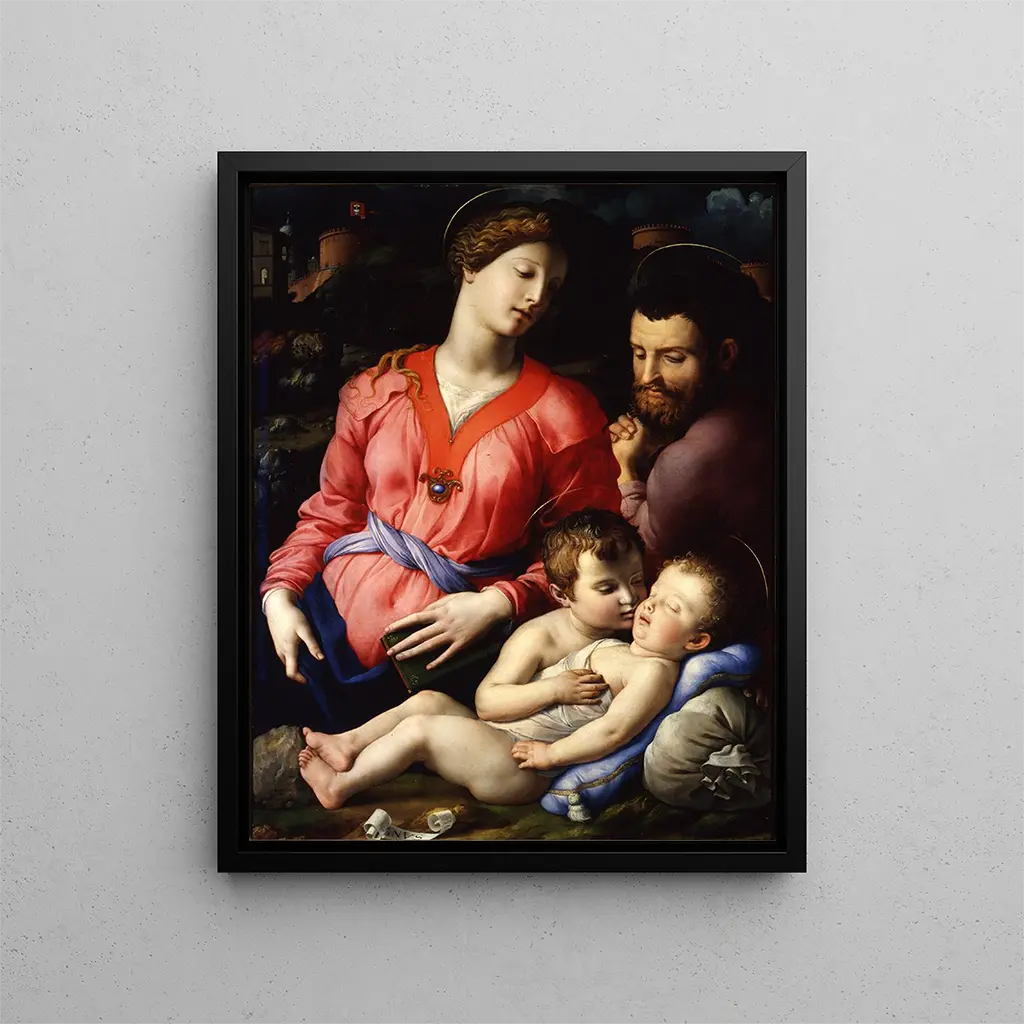 Agnolo Bronzino, a central figure of the Florentine Renaissance, skillfully combined tradition and innovation throughout his career. A pupil of Pontormo, he developed a personal style that sets him apart within the Mannerist movement. His mastery of portraits and religious compositions earned him lasting recognition, both in his time and among subsequent generations. Bronzino also played an important role in spreading humanist ideas, incorporating classical references and reflections on human nature into his works. The Art print of La Sainte Famille Panciatichi reflects this duality between the sacred and the profane, while highlighting the familial and protective aspect of Christian faith. His influence endures through the centuries, inspiring artists and art lovers who see him as an undisputed master.