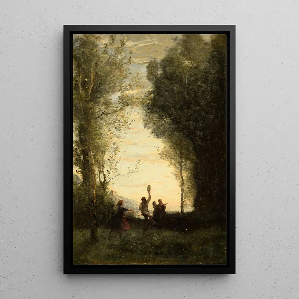 "The Italian Dance" is a vibrant art print that evokes joy and the lightness of movement. Through bright colors and dynamic shapes, Corot depicts a dance scene where the characters seem to come alive under the effect of music. The graceful gestures and expressions of the dancers convey contagious energy, creating a festive and lively atmosphere. Every detail, from costumes to poses, is carefully rendered, offering a total immersion in this celebration of life. The art print of this canvas is an invitation to feel the passion and harmony emanating from the artwork.