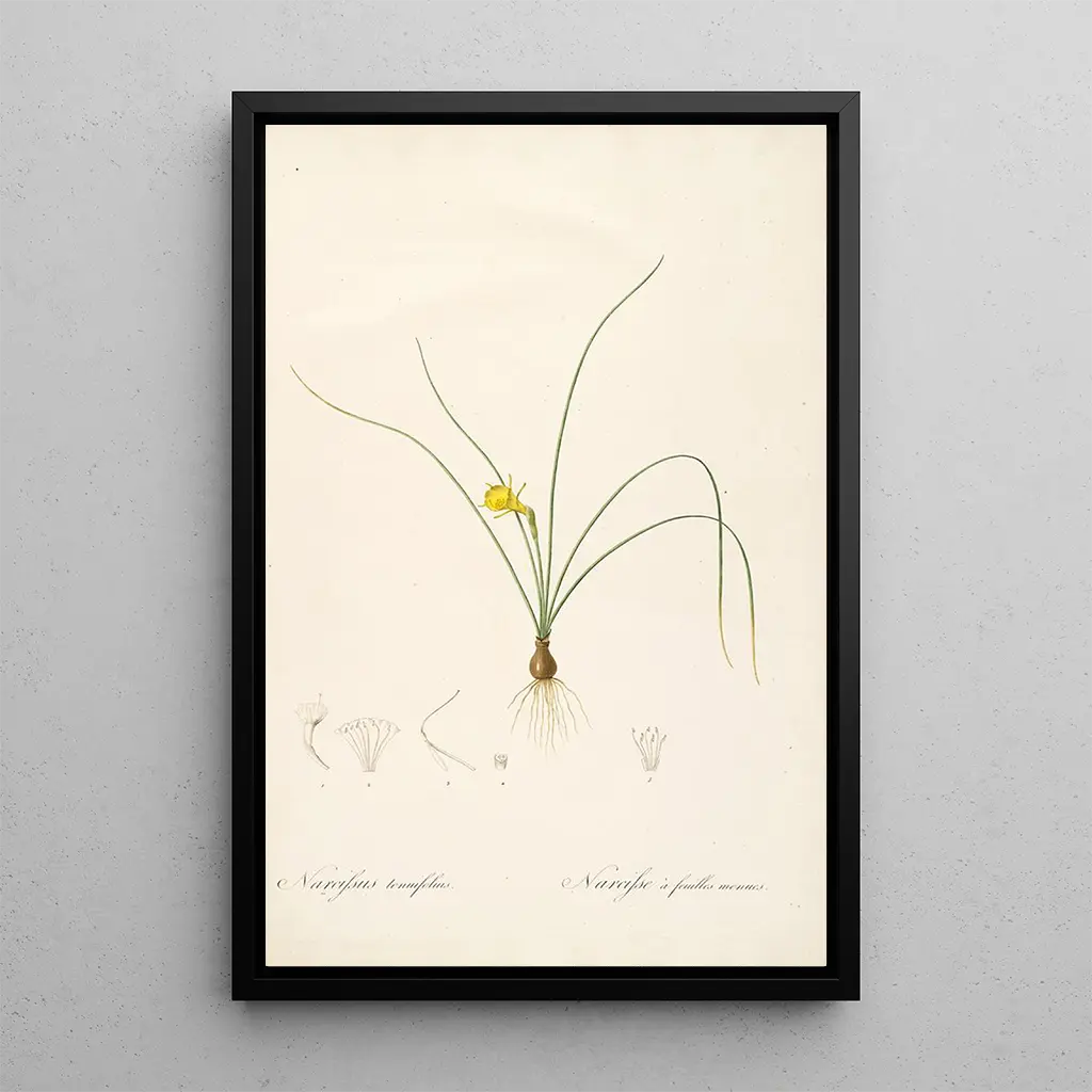 Les Liliacées Pl65 : a celebration of floral beauty In this art print of the work "Les Liliacées Pl65," Pierre Joseph Redouté invites us to immerse ourselves in a universe of delicacy and color. The composition highlights a variety of lilies, whose petals bloom with grace, creating a subtle interplay of shadow and light. The pastel shades, ranging from tender violet to bright white, evoke a serene and soothing atmosphere. Redouté, master of watercolor, employs a meticulous technique that captures every detail of the flowers, paying homage to nature with almost scientific precision. This piece is much more than a simple botanical representation; it is an ode to the ephemeral beauty of flowers. Pierre Joseph Redouté: the painter of flowers in the service of science Pierre Joseph Redouté, nicknamed the "Raphael of flowers," was a Belgian artist of the 18th century, known for his botanical illustrations. Influenced by the naturalist currents of his time, he skillfully combined art and science, contributing to the documentation of floral species. Working mainly at the court of Marie-Antoinette, Redouté had the opportunity to interact with renowned botanists, which enriched his work. His mastery of watercolor and his attention to detail make him an essential figure in floral art. "Les Liliacées Pl65" is part of a series that showcases his exceptional talent and the importance of botany in the 18th century. A decorative acquisition with multiple assets The art print of "Les Liliacées Pl65" is an ideal decorative piece to enhance your interior, whether in a living room, office, or bedroom. Its soft and calming palette harmonizes perfectly with various styles of decoration, from classic to contemporary. The quality of the print guarantees remarkable fidelity to the colors and details of the original work, offering undeniable aesthetic appeal. By choosing this canvas, you bring a touch of nature and serenity to your space, while celebrating the artistic heritage of Pierre Joseph Redouté.