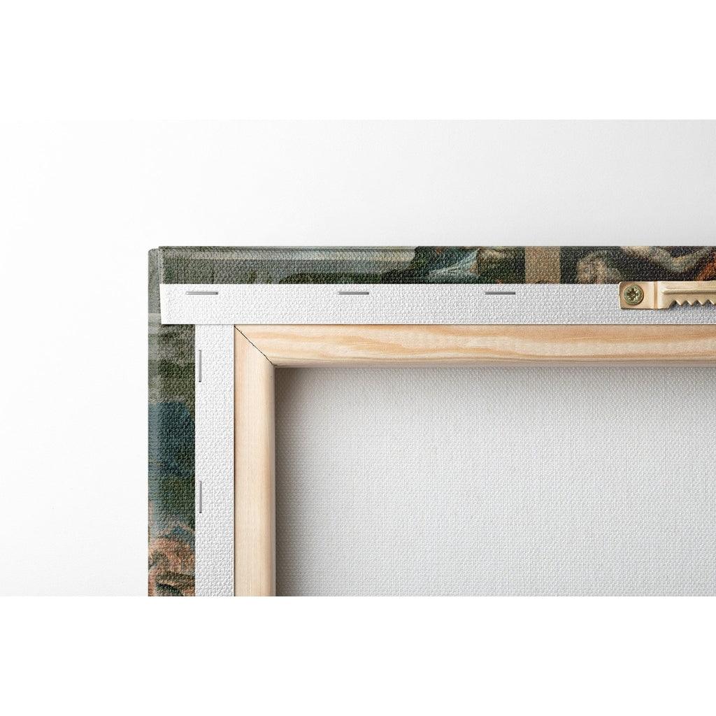 Canvas, matte finish print, mounted on a wooden structure, ready to hang. Framing options available on certain sizes.