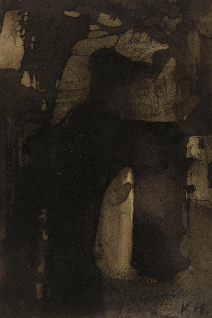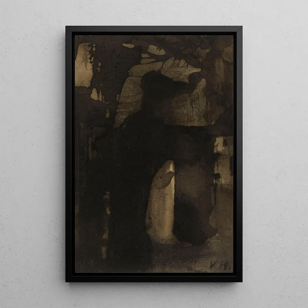 La reproduction de La Bouche d'ombre nous transporte dans un univers où les ombres et les lumières dansent en harmonie. Les couleurs sombres, presque mystiques, se mêlent à des touches de lumière qui évoquent une profondeur émotionnelle. La technique de Victor Hugo, qui allie le dessin et la peinture, crée une atmosphère à la fois intrigante et mélancolique. Ce tableau, véritable reflet de son âme tourmentée, nous invite à explorer les recoins obscurs de notre propre existence, tout en nous offrant une vision poétique de la nature humaine.