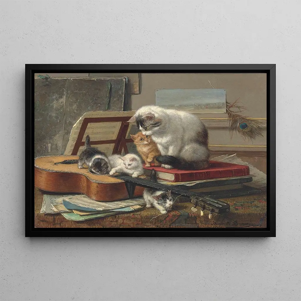 Henriette Ronner-Knip, born in 1821 in Amsterdam, was a Dutch artist renowned for her delicate depictions of domestic life and animals. Influenced by the 19th-century artistic movement, she managed to carve out a place in a world dominated by male artists. Her career, spanning several decades, is marked by a unique style combining finesse and realism, which allowed her to become an important figure of her time. The Music Lesson perfectly illustrates her talent for capturing emotionally charged moments of life, while highlighting her love for music and harmony.
