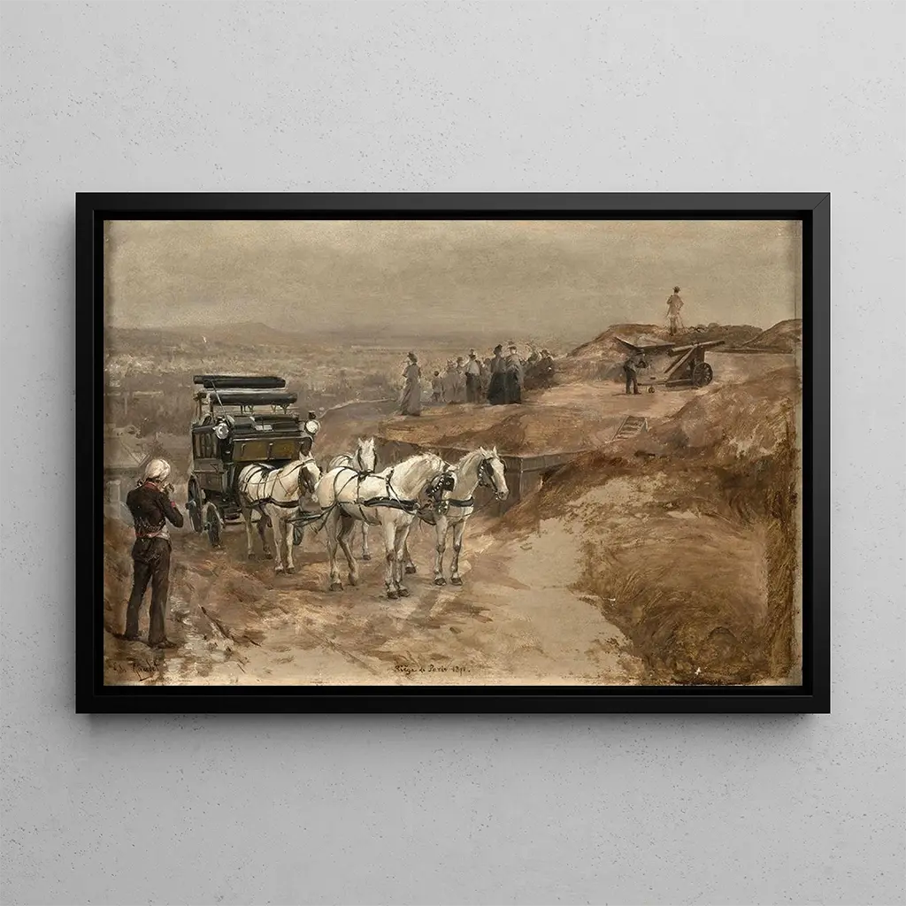 The Siege of Paris 1871: a poignant fresco of history The artwork "The Siege of Paris 1871" by Jules Girardet captures with remarkable intensity the tumult of the Franco-Prussian War. The dark, earthy colors dominate the composition, evoking an atmosphere of despair and resilience. The characters, frozen in dramatic postures, bear witness to the suffering and anxiety that prevailed during this period. Girardet employs oil painting techniques that bring details to life, from faces marked by hardship to urban landscapes in ruins. This piece is an invitation to contemplation, a moving reminder of the trials endured by the Parisian population. Jules Girardet: a witness of his time Jules Girardet, a French painter of the 19th century, is renowned for his historical and military works. Trained at the École des Beaux-Arts in Paris, he was influenced by realism and romanticism, artistic movements that shaped his era. Girardet was able to capture key moments in history, and "The Siege of Paris 1871" is a striking example. His ability to depict scenes of war with such emotion and precision earned him an important place in the pantheon of artists of his time. Through his works, he not only documented historical events but also explored the psychological impacts of these conflicts on individuals. A decorative acquisition with multiple assets The art print of "The Siege of Paris 1871" is a decorative piece that will enhance any interior, whether in a living room, office, or bedroom. Its print quality and fidelity to the details of the original work make it an ideal choice for art and history enthusiasts. By incorporating this artwork into your decor, you add a touch of elegance and depth to your space. The aesthetic appeal of this canvas lies not only in its history but also in its power to evoke strong emotions, making each viewing a moment of reflection and contemplation.