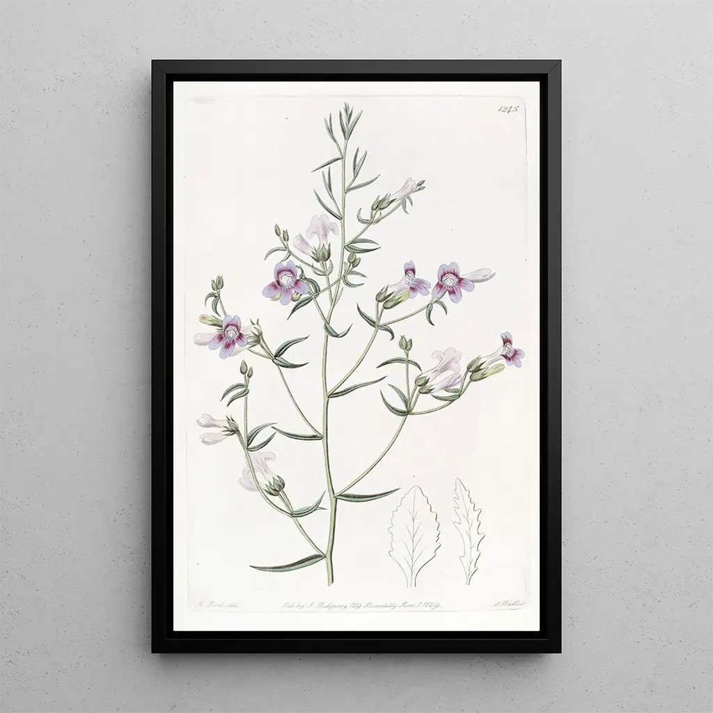 The three-leaf penstemon, a work by Sydenham Edwards, stands out for its brilliance and rich coloration. The vibrant shades of red and green intertwine with remarkable precision, creating a dynamic composition that immediately captures the eye. The engraving technique used by Edwards allows each detail to be rendered with striking clarity, bringing this fascinating plant to life. The atmosphere conveyed by this art print of The three-leaf penstemon is both joyful and soothing, offering an invitation to explore the beauty of flora.