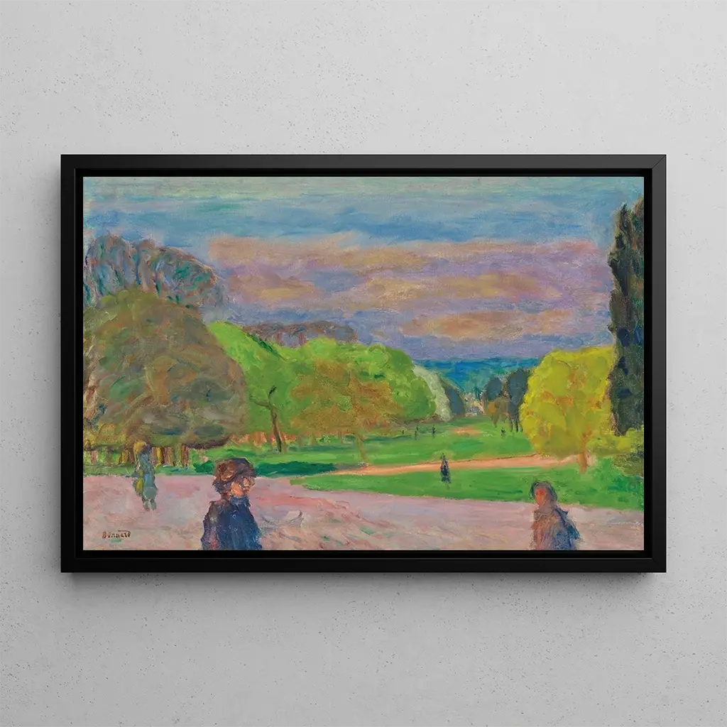 Pierre Bonnard, an iconic figure of the Fauvist movement, mastered capturing light and human emotions through his works. Born in 1867, he was influenced by artists such as Édouard Vuillard and Henri Matisse, shaping his unique style. His creative period mainly spans from the early 20th century until his death in 1947, during which he explored themes of everyday life, intimacy, and nature. The Public Garden is a perfect example of his approach, blending elements of modernity with an almost nostalgic sensitivity, reflecting the importance of nature in urban life.
