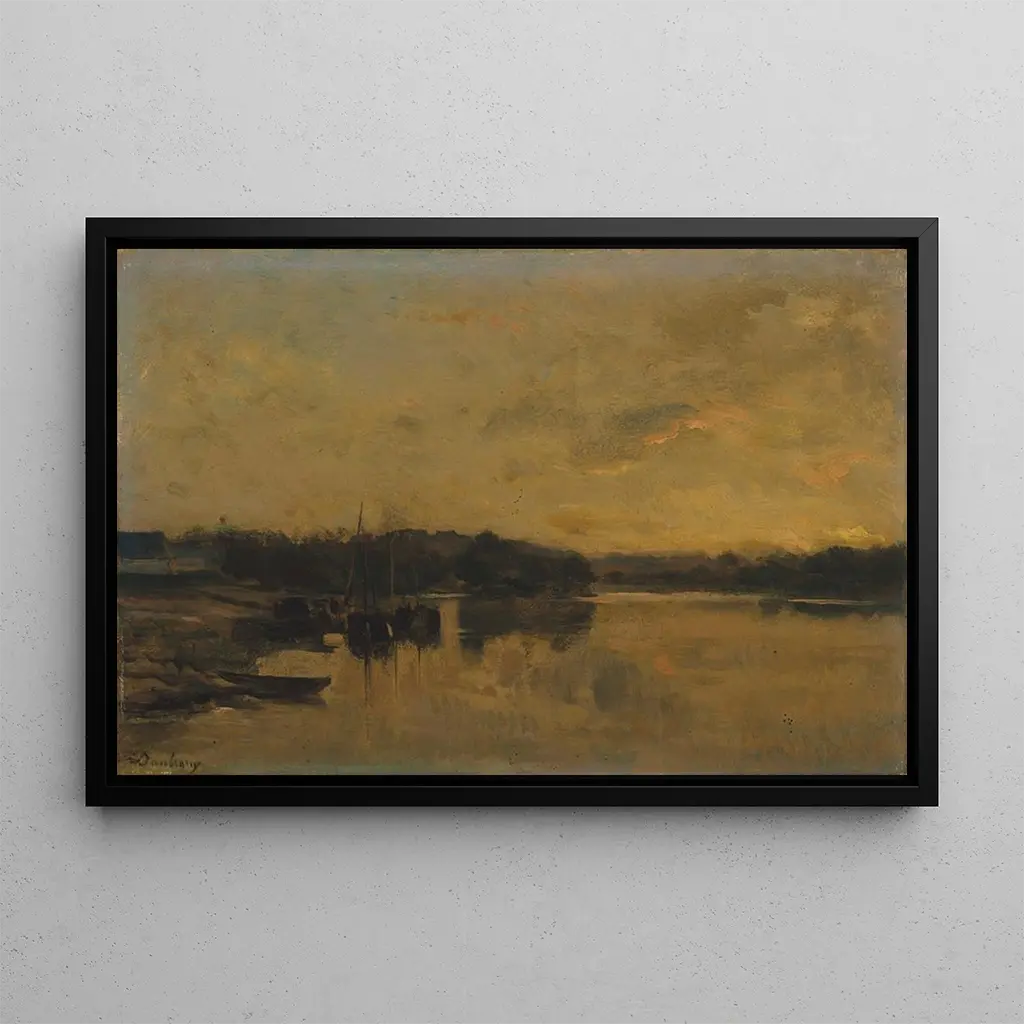 Charles François Daubigny, an iconic figure of the Impressionist movement, was able to capture the beauty of French landscapes in the 19th century. Influenced by plein air painting masters, he developed a unique style that emphasizes light and color. Active during a period when art was evolving towards freer and more expressive forms, Daubigny played a key role in the emergence of Impressionism. His works, including The River in the Evening, demonstrate his ability to translate the emotion of a fleeting moment, while incorporating elements of the surrounding nature. His legacy endures, inspiring many contemporary artists.