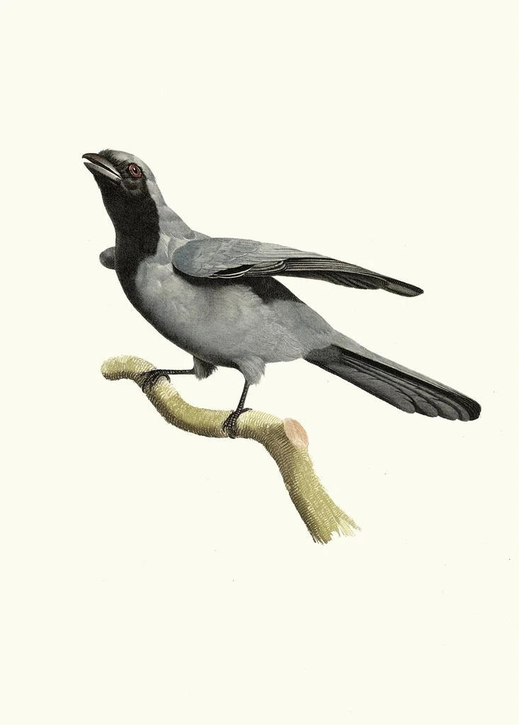 The art print of the Black Masked Rollier reveals a bird of striking beauty, with its dark plumage and iridescent reflections. Jacques Barraband, through his talent, manages to capture the elegance of this bird, whose piercing gaze and distinctive mask add a mysterious dimension to the work. The meticulous details of the feathers, rendered with refined watercolor technique, create an atmosphere that is both captivating and poetic, inviting the viewer to immerse themselves in the fascinating world of birds.