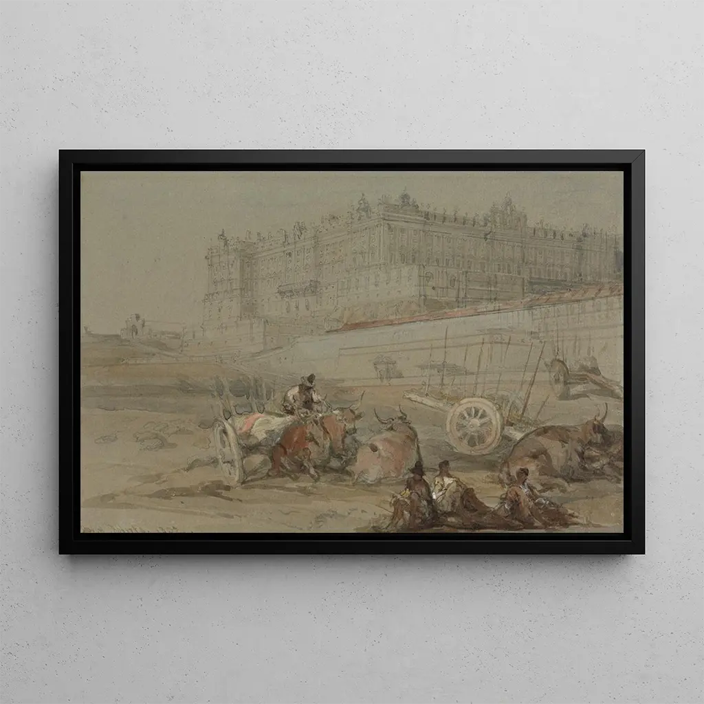 David Roberts, born in Scotland in 1796, is recognized as one of the greatest painters of landscapes and architecture of the 19th century. His work is characterized by a romantic style, where he combines precision and emotion. Influenced by his travels in Europe and the Middle East, Roberts was able to capture the essence of places with a unique sensitivity. His period of creation, mainly in the 1820s and 1830s, coincides with a growing interest in Orientalism and travel. This art print of the Royal Palace of Madrid demonstrates his skill in immortalizing historic sites, making him an essential figure in British art.