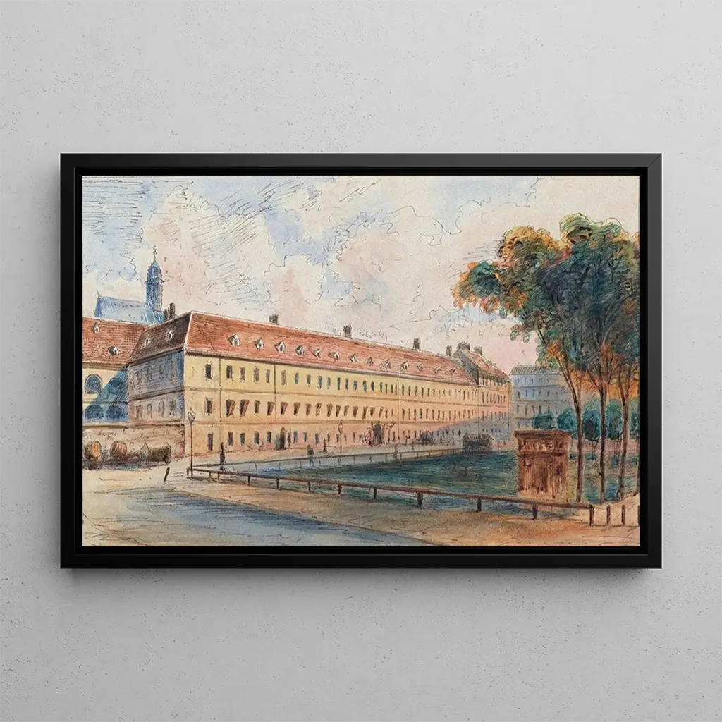 Salzgries Barracks: An Architectural Testament of the Past "Salzgries Barracks" is a work that evokes the strength and majesty of 19th-century military buildings. This art print depicts an imposing barracks, with precise architectural lines and a earthy color palette that emphasizes the robustness of the structure. Light plays a crucial role, highlighting the details of the facades and creating an atmosphere of respect and nostalgia. The artist manages to capture not only the building but also the spirit of a time when military architecture was both functional and symbolic, bearing witness to the power of a state. Emil Hütter: An artist at the heart of urban transformations Emil Hütter, an Austrian painter active at the turn of the 20th century, was able to immortalize the architectural transformations of his time. Influenced by the artistic movement of his era, he developed a style that combines realism and impressionism, focusing on iconic buildings in Vienna and other cities. His ability to capture the essence of structures while incorporating elements of daily life makes him an important artist in Austrian art history. Hütter was able to testify to social and urban changes through his works, making "Salzgries Barracks" a perfect example of his artistic approach. A decorative acquisition with multiple assets The art print of "Salzgries Barracks" is a perfect addition for those who wish to bring a touch of history and character to their interior. Whether in an office, a living room, or a waiting area, this canvas will captivate attention and spark conversations. Its printing quality guarantees remarkable fidelity to the details of the original work, while offering a refined aesthetic. By choosing this art print, you give your space a unique atmosphere, combining elegance and historical memory.