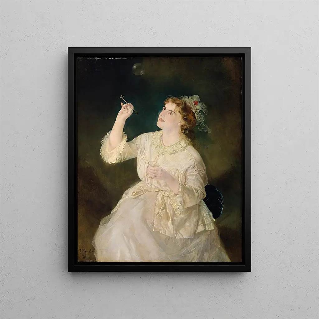 In the fascinating world of art, some works manage to capture the essence of life with such intensity that they transcend the simple frame of the canvas. "The Soap Bubble Blower" by Anton Romako is one of those creations that, through its lightness and poetry, invites the viewer on a sensory journey. This piece, created at the end of the 19th century, depicts a daily scene imbued with magic, where a young boy, focused and amazed, engages in the art of creating ephemeral bubbles. Each bubble, floating in the air, becomes a metaphor for childhood, innocence, and the passage of time. The artist manages to seize this fleeting moment with such precision that one can almost hear the gentle breath of the young blower. Style and uniqueness of the work Anton Romako's painting technique is distinguished by its subtle use of light and colors, which give the scene a mood that is both gentle and vibrant. Pastel shades, mixed with brighter touches, create a harmonious contrast that draws the eye and maintains the viewer's attention. The composition is carefully orchestrated, with a blurred background that highlights the protagonist while suggesting a rich and lively outside world. This stylistic choice reinforces the idea that beauty lies in the simple details of everyday life. The way Romako renders the movement of the bubbles, almost dancing under the light, is a technical feat that demonstrates his skill in capturing not only the image but also the emotion it conveys. The artist and his influence Anton Romako, an Austrian painter of Hungarian origin, is often recognized for his ability to fuse realism with a touch of impressionism. Trained in the most prestigious art academies of his time, he developed a style that is uniquely his own, imbued with sensitivity and depth. His work is marked by an exploration of themes of childhood and daily life, often charged with palpable nostalgia. Romako has influenced many artists of his era, and his perspective on the world continues to inspire