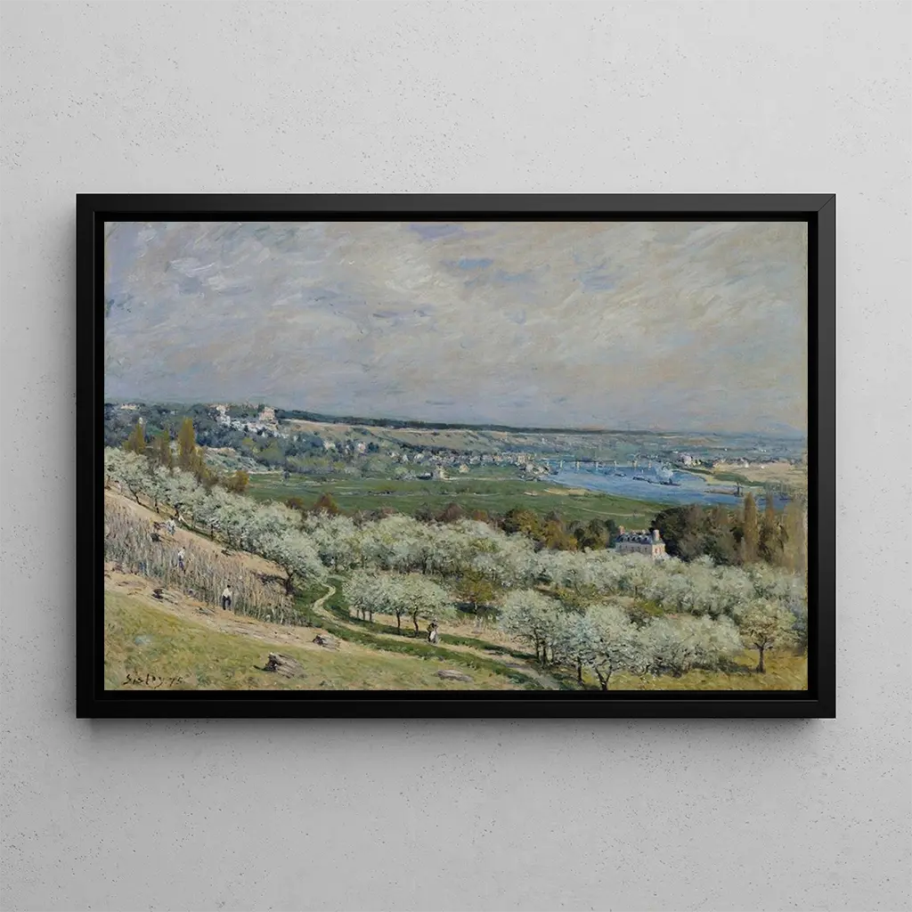 The Terrace at Saint-Germain in Spring: a vibrant painting of light and life The Terrace at Saint-Germain in Spring is a work that captures the very essence of spring, with its bright colors and gentle light. Alfred Sisley, a master of Impressionism, uses delicate brushstrokes to depict a lively scene where characters blend with flourishing nature. The fresh greens of the trees and the touches of yellow in the flowers create a joyful and serene atmosphere. The composition, centered on the terrace, invites the viewer to immerse themselves in this moment of conviviality, where time seems to stand still. Every detail, from cast shadows to light reflections, demonstrates Sisley's technical mastery and his love for nature. Alfred Sisley: a pioneer of Impressionism Alfred Sisley, born in 1839 in Paris, is often considered one of the great masters of Impressionism, alongside Monet and Renoir. Influenced by the light and landscapes of the French countryside, Sisley developed a unique style characterized by vivid colors and harmonious compositions. Although he spent much of his life in the shadow of his contemporaries, his work gained recognition over the decades. The Impressionist period, which emerged in the 1870s, revolutionized painting by emphasizing visual perception and immediacy. Sisley, with his sensitivity to nature, played a crucial role in this artistic movement. A decorative acquisition with multiple assets The art print of The Terrace at Saint-Germain in Spring is an ideal decorative piece to enrich your interior. Whether in a living room, office, or bedroom, this painting adds a touch of freshness and vitality. Its reproduction quality guarantees fidelity to the colors and details of the original work, allowing you to fully enjoy the springtime atmosphere it exudes. By choosing this canvas, you opt for a decorative element that will undoubtedly catch the eye and evoke emotions, while paying tribute to one of the masters of Impressionism.