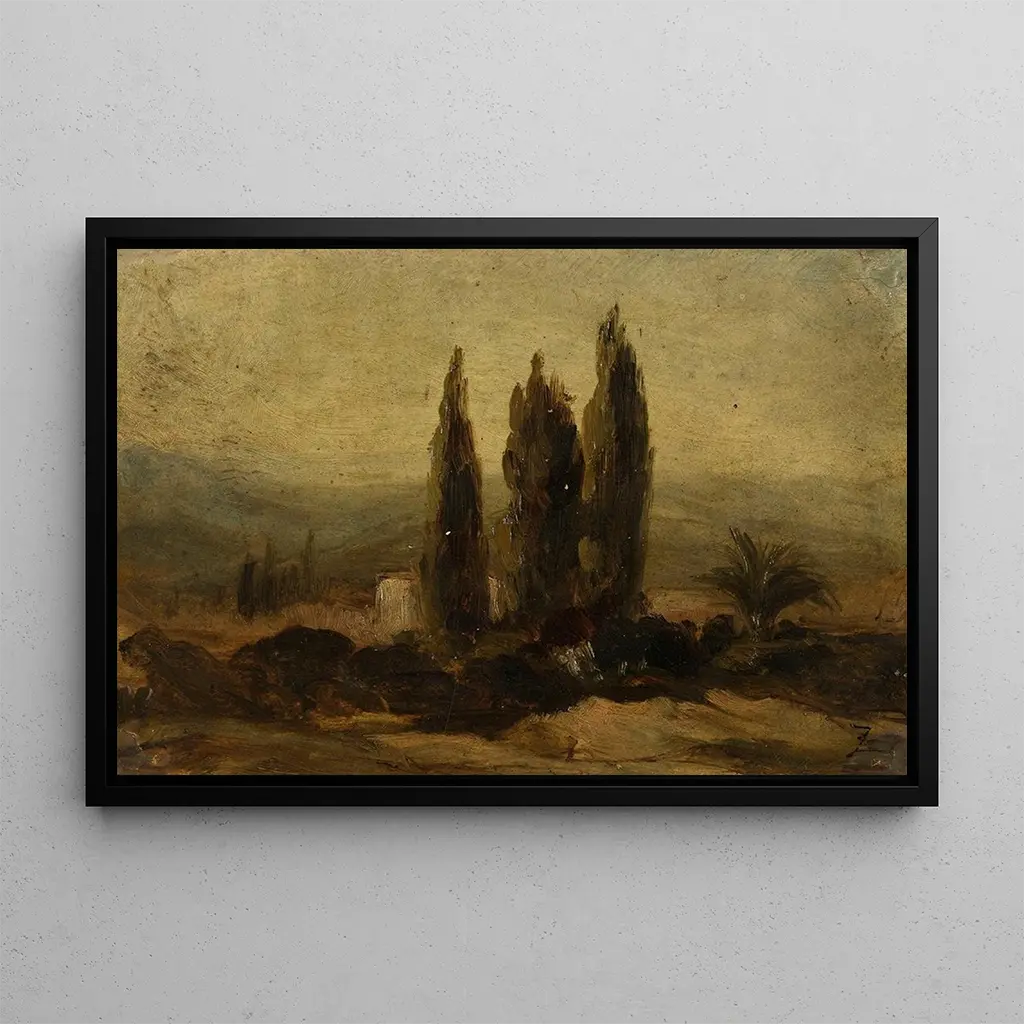 Les Trois cyprès : an harmony between nature and light In "Les Trois cyprès," Félix Ziem immerses us in a Mediterranean landscape where light plays a central role. The canvas stands out with its vibrant colors, ranging from the deep greens of the cypresses to the golden hues of the sky at dusk. Ziem's technique, which skillfully combines brushwork and knife work, creates a rich and dynamic texture, inviting the viewer to feel the gentle breeze and the scent of pine trees. The atmosphere emanating from this art print is both peaceful and inspiring, evoking a serene contemplation of natural beauty. Félix Ziem: a master of romantic landscapes Félix Ziem, a French painter of the 19th century, is renowned for his seascapes and views of Venice. Influenced by Romanticism, he develops a unique style that blends realism and impressionism. Ziem travels across Europe, capturing the light and colors of the various places he visits. His work is marked by a sensitivity to nature, and he is often considered a precursor to Impressionist artists. His ability to translate the emotion of a landscape makes him an iconic figure of his time, and "Les Trois cyprès" is a perfect example of his talent. A decorative acquisition with multiple assets The art print of "Les Trois cyprès" is an ideal decorative choice to bring a touch of serenity to your interior. Whether in a living room, office, or bedroom, this piece evokes a calming and inspiring atmosphere. Its reproduction quality ensures remarkable fidelity to the colors and details of the original work, allowing you to appreciate all the beauty of Ziem's creation. With its aesthetic appeal, this canvas becomes a true focal point, inspiring admiration from your guests while enriching your living space.
