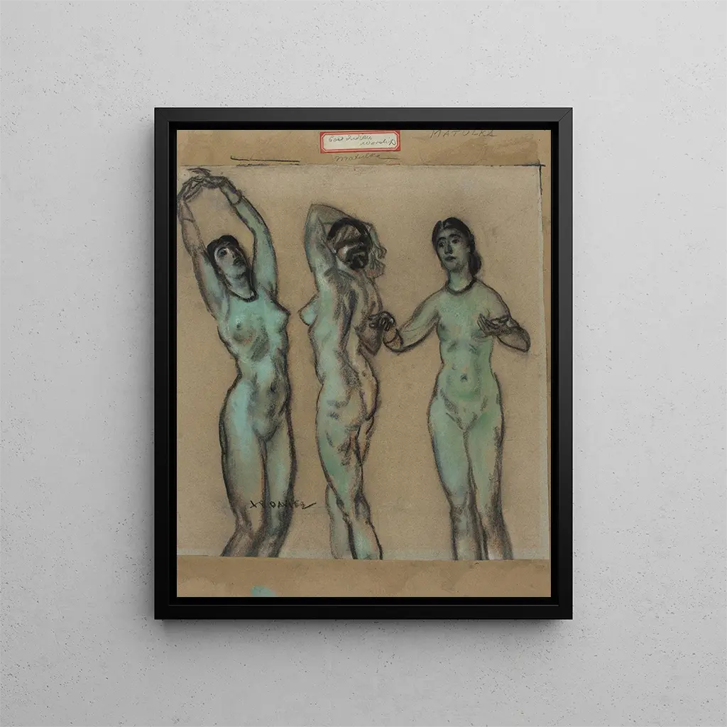 Reproduction Les Trois Grâces - Arthur Bowen Davies – Captivating Introduction In the world of art, certain works transcend time and space, captivating viewers' imaginations across ages. "Les Trois Grâces" by Arthur Bowen Davies is one of those creations that evoke timeless beauty and visual harmony. This iconic piece, celebrating feminine grace and elegance, invites us to immerse ourselves in a universe where mythology meets sensuality. By contemplating this art print, one feels a deep connection with the aesthetic ideals of the early 20th century, an era marked by a pursuit of pure beauty and liberated artistic expression. Style and uniqueness of the work Arthur Bowen Davies's work stands out for its unique approach and ability to capture moments of delicacy and movement. "Les Trois Grâces" perfectly illustrates this quest for harmony, where the female figures intertwine in a graceful dance, evoking both Greek mythology and a modern vision of femininity. The fluid curves and elegant poses of the characters seem to defy gravity, creating an atmosphere of lightness and dreaminess. The color palette chosen by the artist, with soft and luminous tones, enhances this impression of serenity and timeless beauty. Every detail, from delicate drapery to subtle expressions, reflects meticulous care and artistic sensitivity that invite the viewer to prolonged contemplation. The artist and his influence Arthur Bowen Davies, an emblematic figure of the early 20th century, established himself as a master of symbolism and impressionism. His ability to fuse elements of nature with mythological themes allowed him to create works of great emotional depth. "Les Trois Grâces" is not just a representation of feminine beauty; it is also a reflection on the interconnectedness between man and nature, a theme dear to the artist. Davies influenced many contemporaries and paved the way for a new approach to artistic representation, where imagination and sensitivity took precedence over mere reproduction of reality. His work continues to inspire generations of